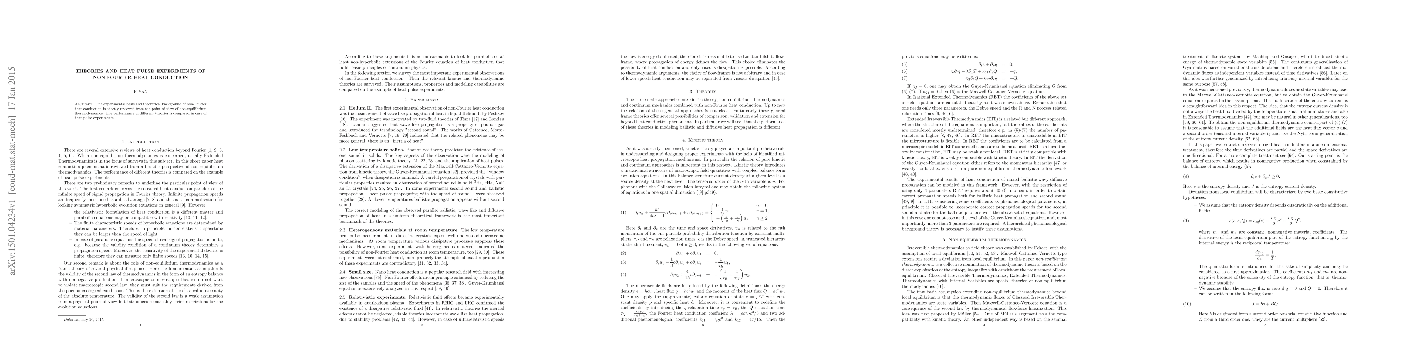 This paper reviews non-Fourier heat conduction theories and compares their performance using heat pulse experiments, emphasizing non-equilibrium thermodynamics as the theoretical framework. The study highlights the differences in how various models handle transient heat conduction scenarios.