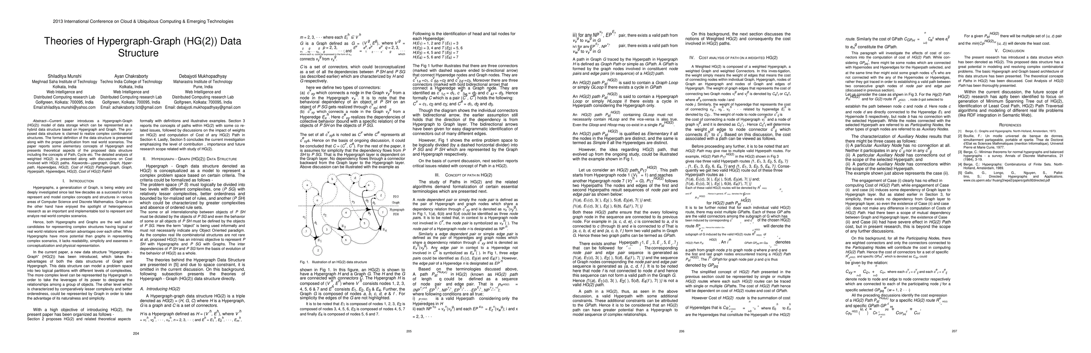 Current paper introduces a Hypergraph Graph model of data storage which can be represented as a hybrid data structure based on Hypergraph and Graph. The pro-posed data structure is claimed to realize complex combinatorial structures. The formal definition of the data structure is presented along with the proper justification from real world scenarios. The paper reports some elementary concepts of Hypergraph and presents theoretical aspects of the proposed data structure including the concepts of Path, Cycle etc. The detailed analysis of weighted HG 2 is presented along with discussions on Cost involved with HG 2 paths.