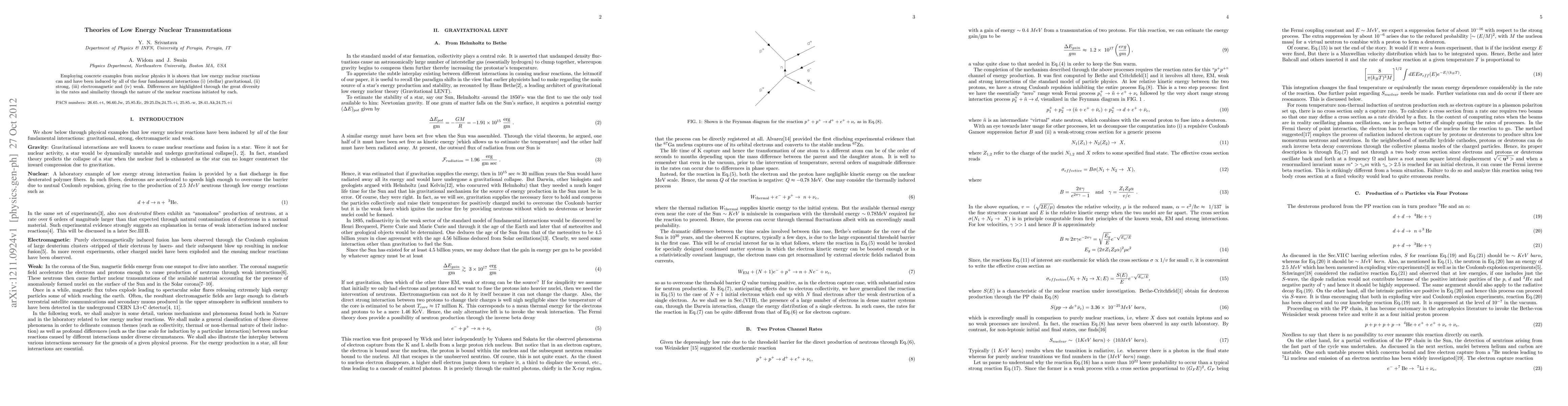 This paper demonstrates that low energy nuclear transmutations can be induced by all four fundamental interactions—gravitational, strong, electromagnetic, and weak—each leading to diverse reaction rates but similar nuclear transformation processes.