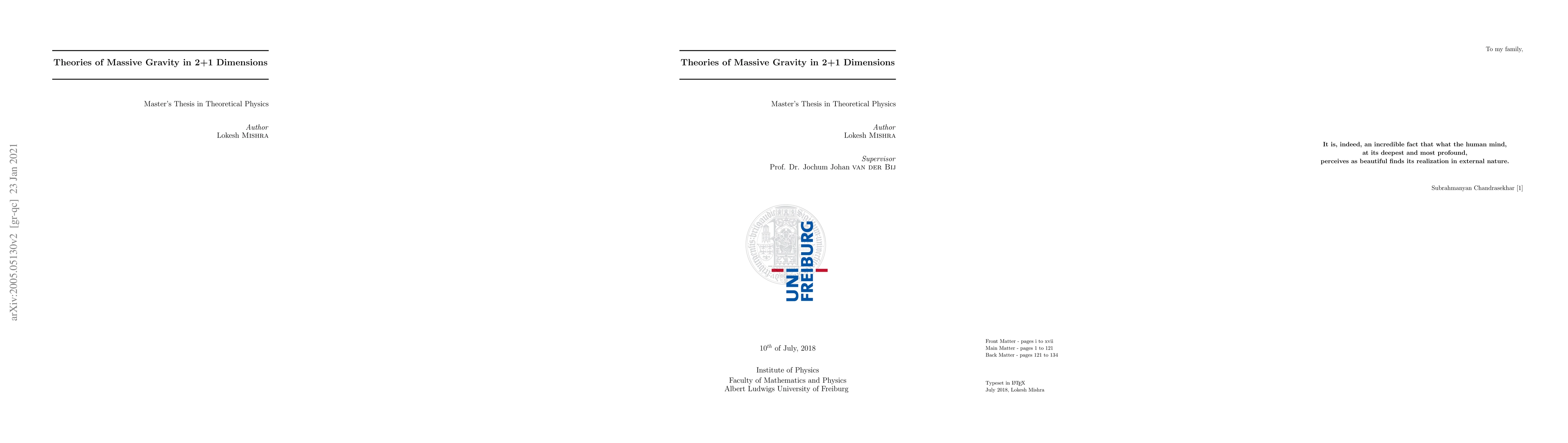 This paper explores theories of massive gravity in 2+1 dimensions, focusing on the mass-mixing phenomena in gauge bosons and gravitons through metric-based and topological mass mechanisms. The study extends the bimetric theory of gravity to Topologically Massive Bimetric Gravity (TMBG), revealing 3 mixed massive graviton modes and calculating quantum loop corrections from massive photons.