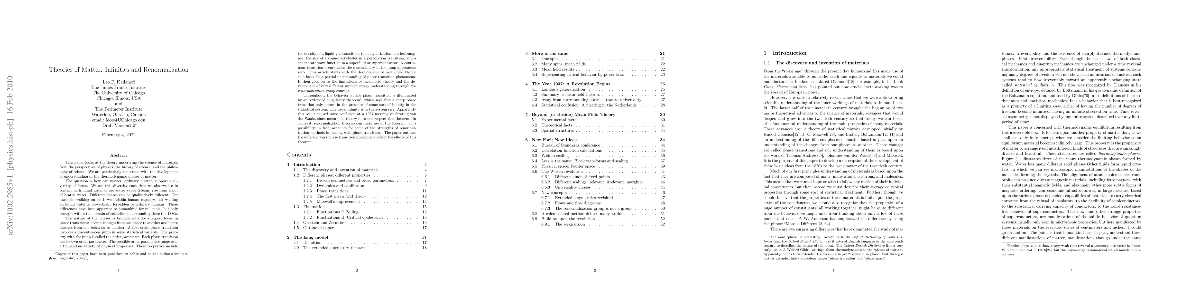 This paper explores the theories explaining matter's diverse forms, focusing on phase transitions. It contrasts mean field theory's limitations with renormalization group's strengths, highlighting how the latter adheres to an 'extended singularity theorem' that phase transitions involve infinities, thereby providing a more robust understanding of material behavior.