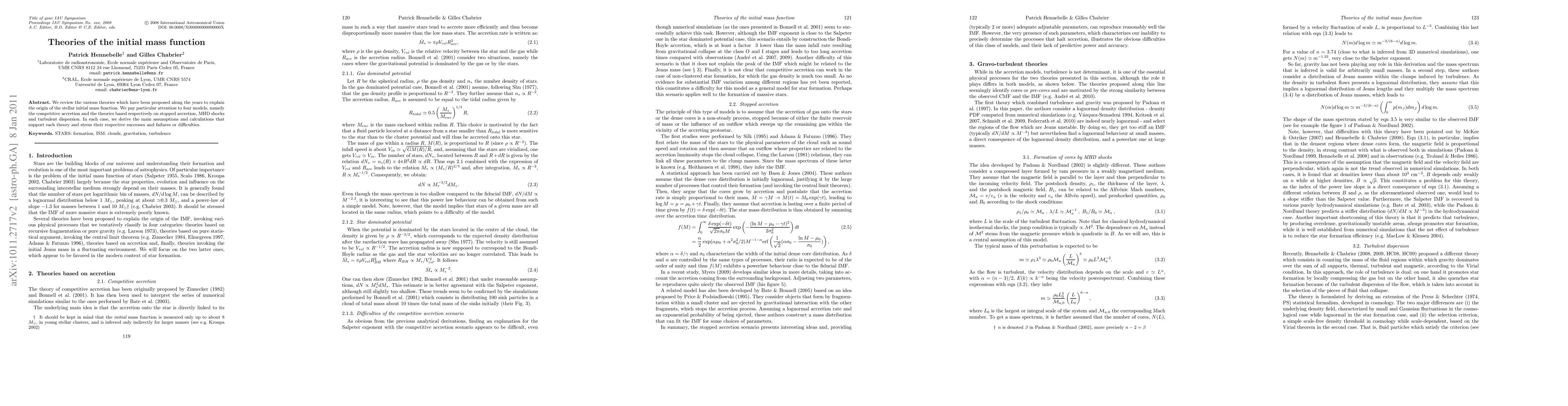 This paper reviews theories explaining the stellar initial mass function, focusing on competitive accretion and models based on stopped accretion, MHD shocks, and turbulent dispersion. It analyzes the assumptions and calculations supporting each theory, highlighting their strengths and weaknesses.