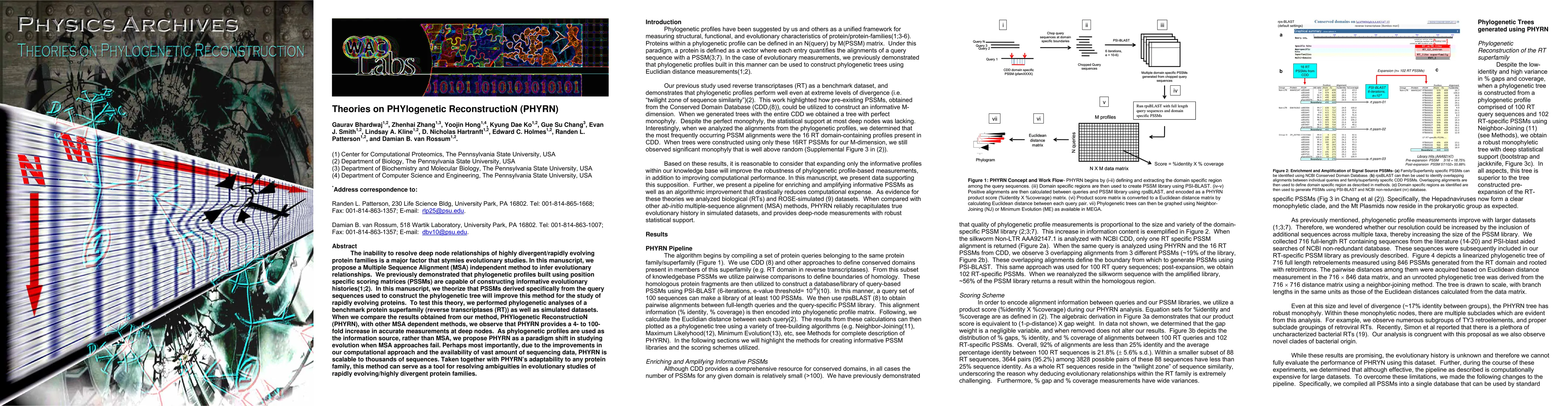The inability to resolve deep node relationships of highly divergent/rapidly evolving protein families is a major factor that stymies evolutionary studies. In this manuscript, we propose a Multiple Sequence Alignment (MSA) independent method to infer evolutionary relationships. We previously demonstrated that phylogenetic profiles built using position specific scoring matrices (PSSMs) are capable of constructing informative evolutionary histories(1;2). In this manuscript, we theorize that PSSMs derived specifically from the query sequences used to construct the phylogenetic tree will improve this method for the study of rapidly evolving proteins. To test this theory, we performed phylogenetic analyses of a benchmark protein superfamily (reverse transcriptases (RT)) as well as simulated datasets. When we compare the results obtained from our method, PHYlogenetic ReconstructioN (PHYRN), with other MSA dependent methods, we observe that PHYRN provides a 4- to 100-fold increase in accurate measurements at deep nodes. As phylogenetic profiles are used as the information source, rather than MSA, we propose PHYRN as a paradigm shift in studying evolution when MSA approaches fail. Perhaps most importantly, due to the improvements in our computational approach and the availability of vast amount of sequencing data, PHYRN is scalable to thousands of sequences. Taken together with PHYRNs adaptability to any protein family, this method can serve as a tool for resolving ambiguities in evolutionary studies of rapidly evolving/highly divergent protein families.