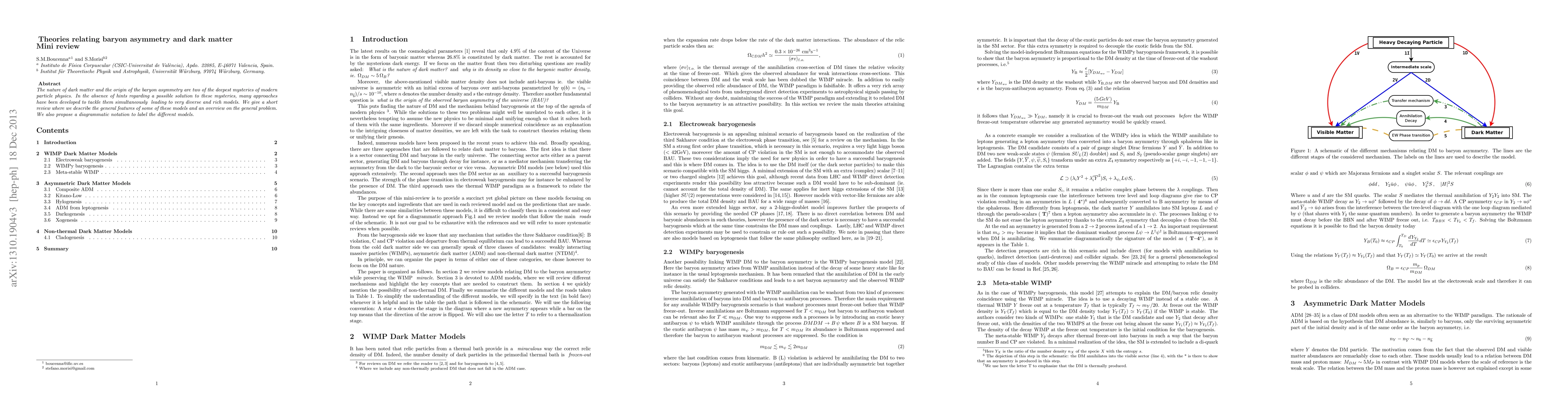 The nature of dark matter and the origin of the baryon asymmetry are two of the deepest mysteries of modern particle physics. In the absence of hints regarding a possible solution to these mysteries, many approaches have been developed to tackle them simultaneously leading to very diverse and rich models. We give a short review where we describe the general features of some of these models and an overview on the general problem. We also propose a diagrammatic notation to label the different models.
