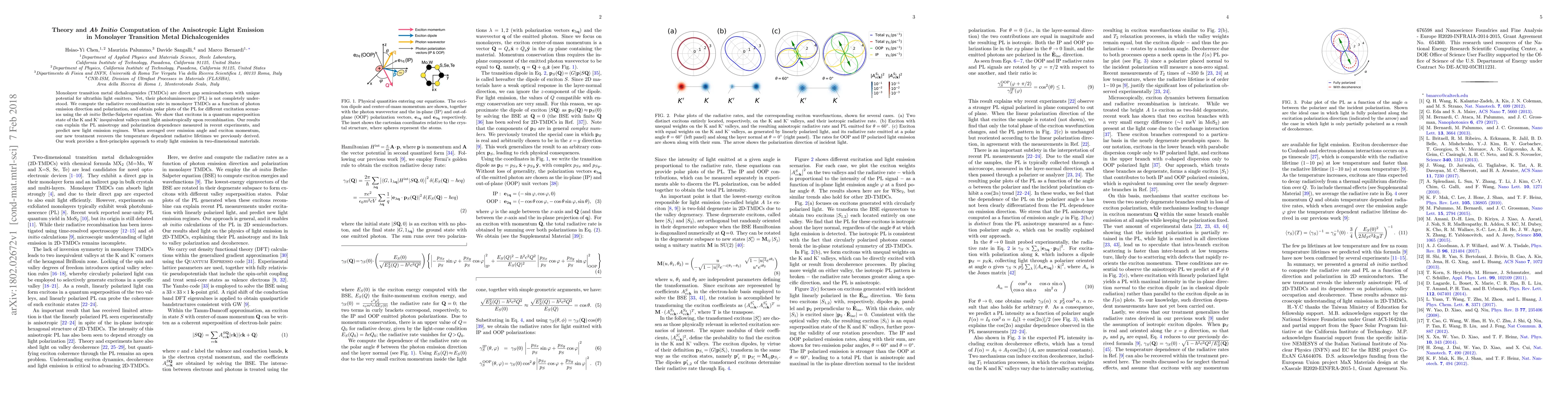 This paper uses ab initio computations to analyze the anisotropic light emission in monolayer transition metal dichalcogenides, revealing that excitons in quantum superposition states emit light directionally. The findings explain experimental observations and predict new emission regimes, offering a foundational approach for studying light emission in two-dimensional materials.