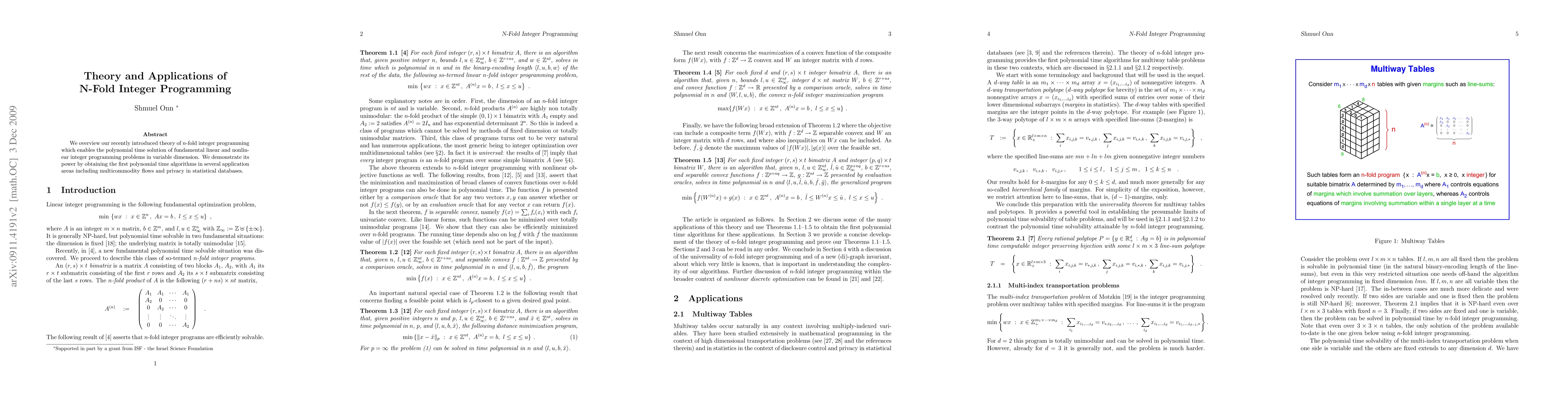 We overview our recently introduced theory of n-fold integer programming which enables the polynomial time solution of fundamental linear and nonlinear integer programming problems in variable dimension. We demonstrate its power by obtaining the first polynomial time algorithms in several application areas including multicommodity flows and privacy in statistical databases.