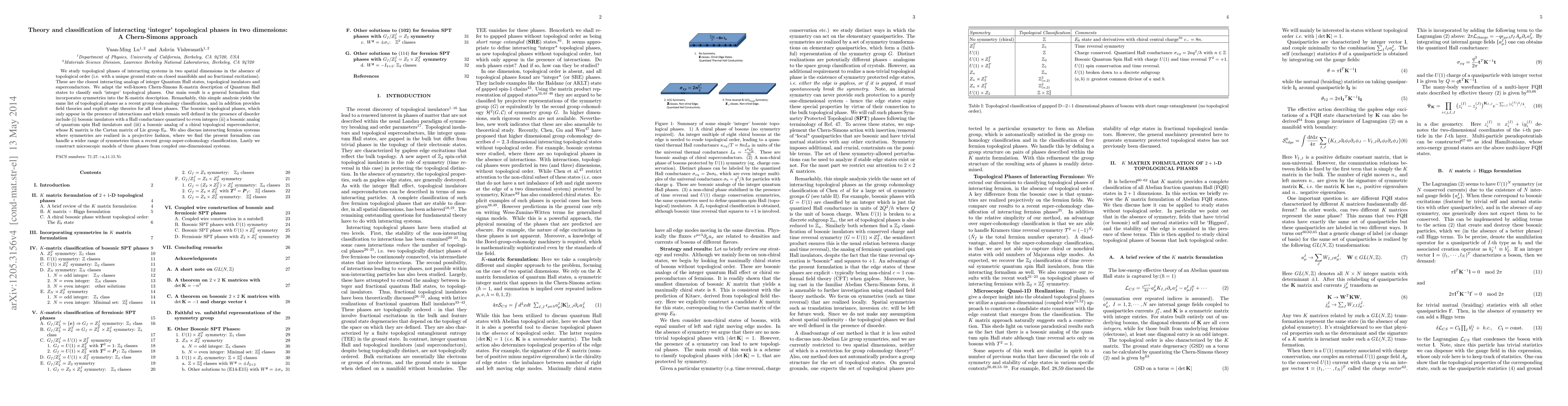 This paper develops a Chern-Simons approach to classify interacting 'integer' topological phases in two dimensions, analogous to integer Quantum Hall states. It introduces a formalism that incorporates symmetries into the K-matrix description, yielding a comprehensive list of bosonic topological phases, including even-integer Hall insulators, quantum spin Hall insulators, and chiral topological superconductors, and extends to a wider range of symmetries in fermionic systems.