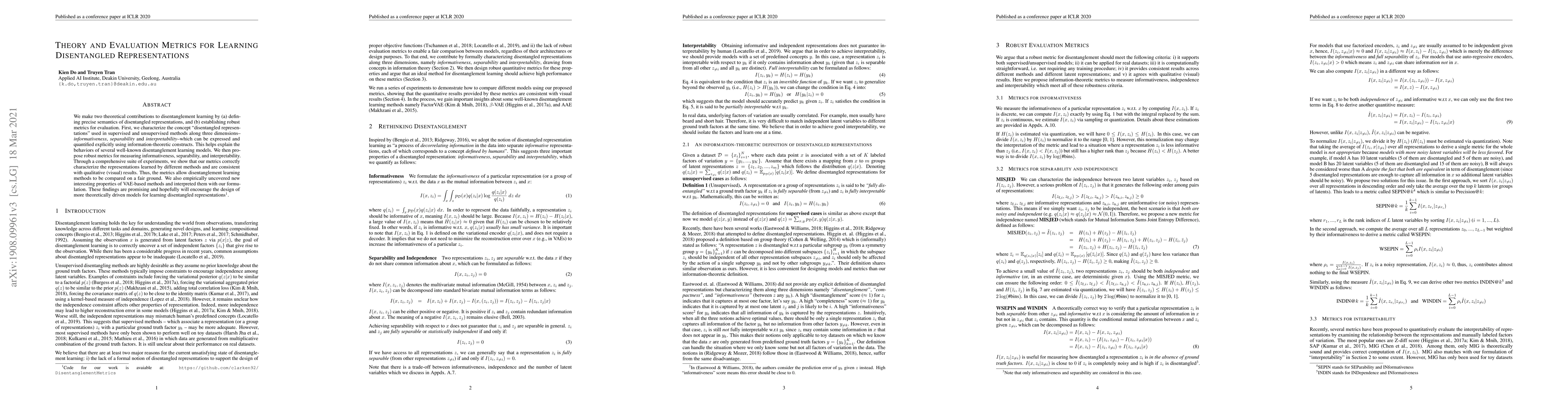 This paper defines precise semantics for disentangled representations and establishes robust evaluation metrics based on informativeness, separability, and interpretability. The proposed metrics enable fair comparison of different disentanglement learning methods and reveal new insights into VAE-based approaches.