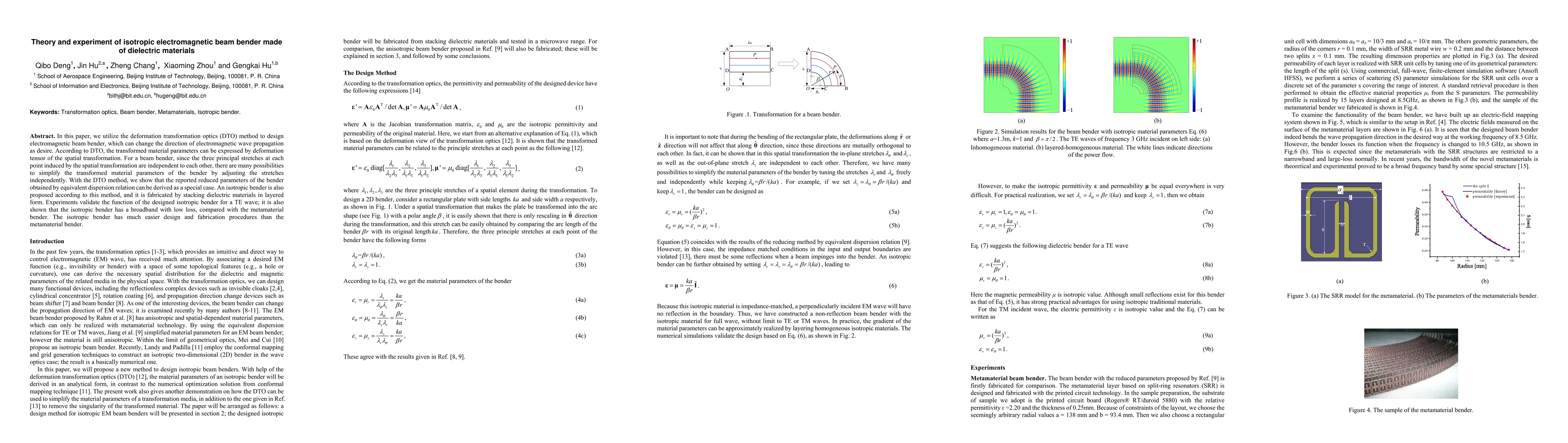 Researchers designed an isotropic electromagnetic beam bender using dielectric materials, achieving a broadband with low loss and simpler design/fabrication compared to metamaterial benders.