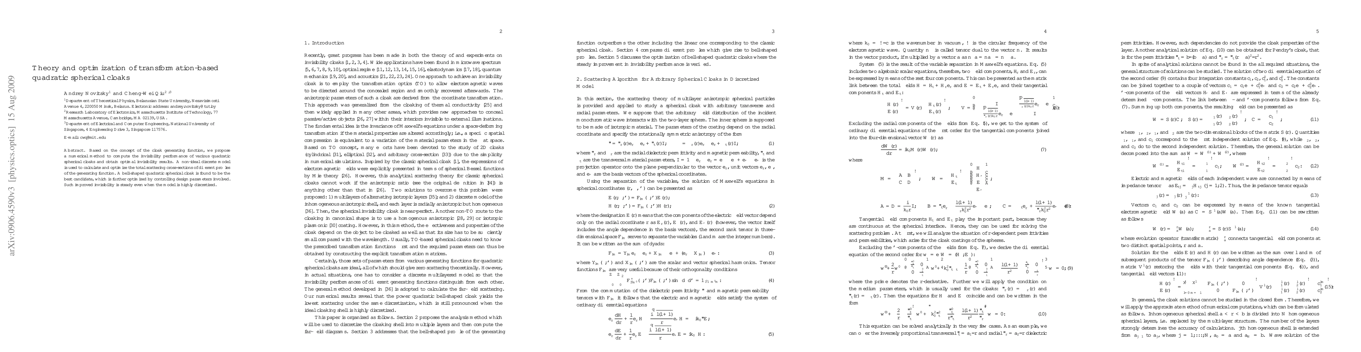 This research introduces a numerical method to optimize the performance of quadratic spherical cloaks using a cloak generating function. A bell-shaped quadratic spherical cloak proves most effective, maintaining optimal invisibility even with high discretization.