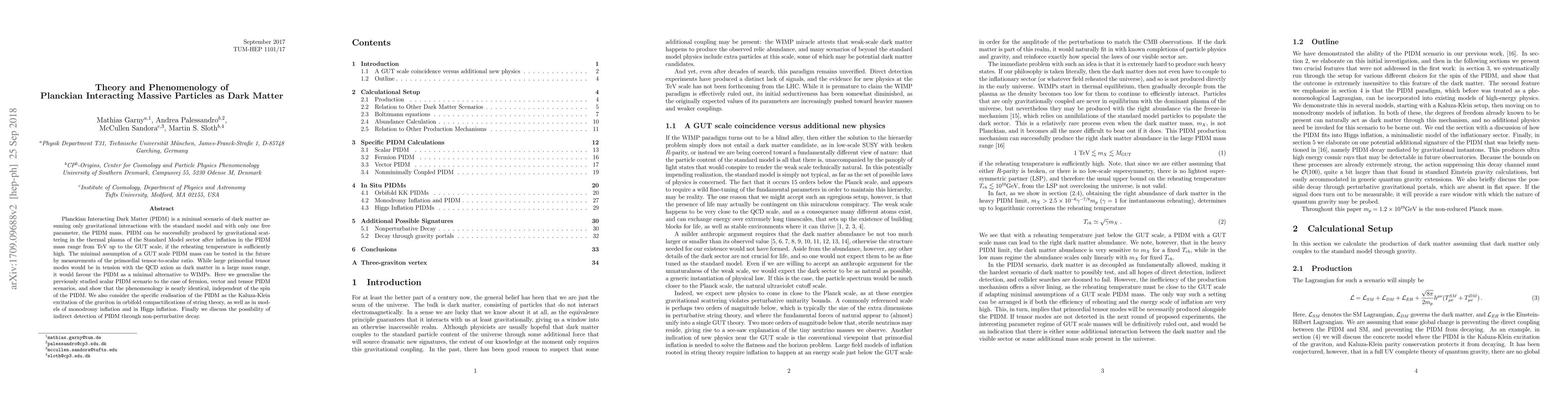This paper explores Planckian Interacting Dark Matter (PIDM) as a minimal dark matter scenario, focusing on its production via gravitational scattering and its potential detection. The study generalizes PIDM to various spin states and discusses its viability compared to other dark matter candidates.