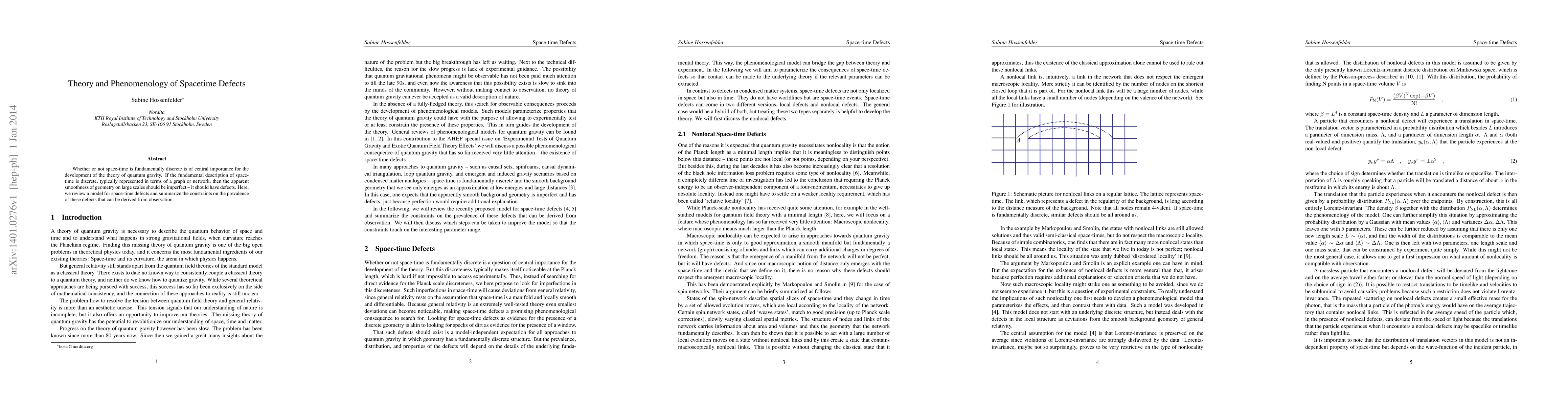 This paper reviews a theoretical model for spacetime defects arising from a discrete fundamental description of space-time, and discusses observational constraints that limit the prevalence of these defects to maintain the apparent smoothness of geometry on large scales.