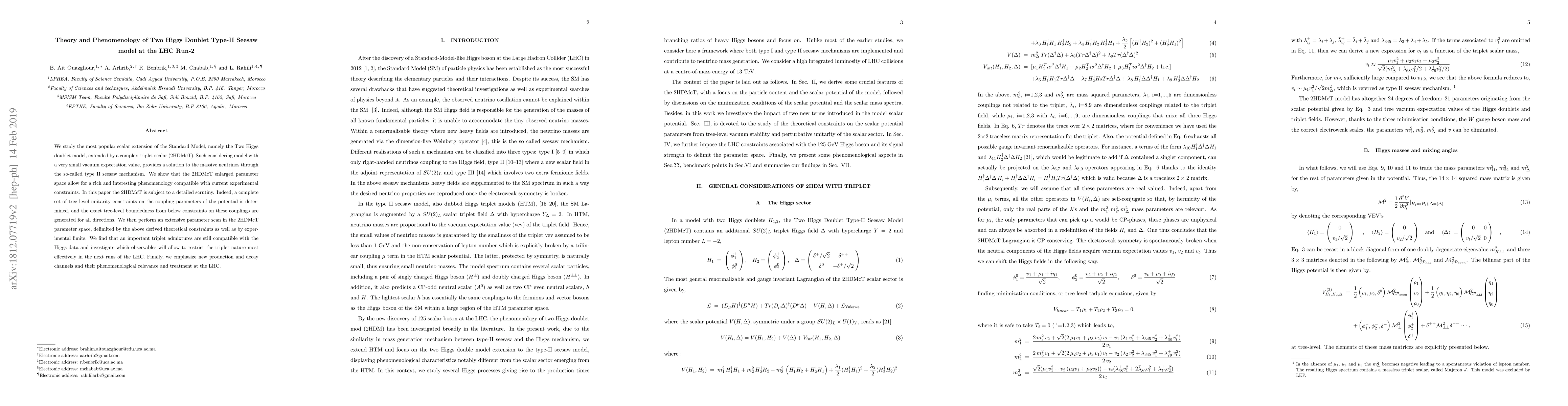 This paper investigates the Two Higgs Doublet Model extended by a complex triplet scalar (2HDMcT) with a small vacuum expectation value, explaining massive neutrinos via the type II seesaw mechanism. It explores the model's rich phenomenology under theoretical and experimental constraints, identifying new production and decay channels that could be probed at the LHC Run-2.