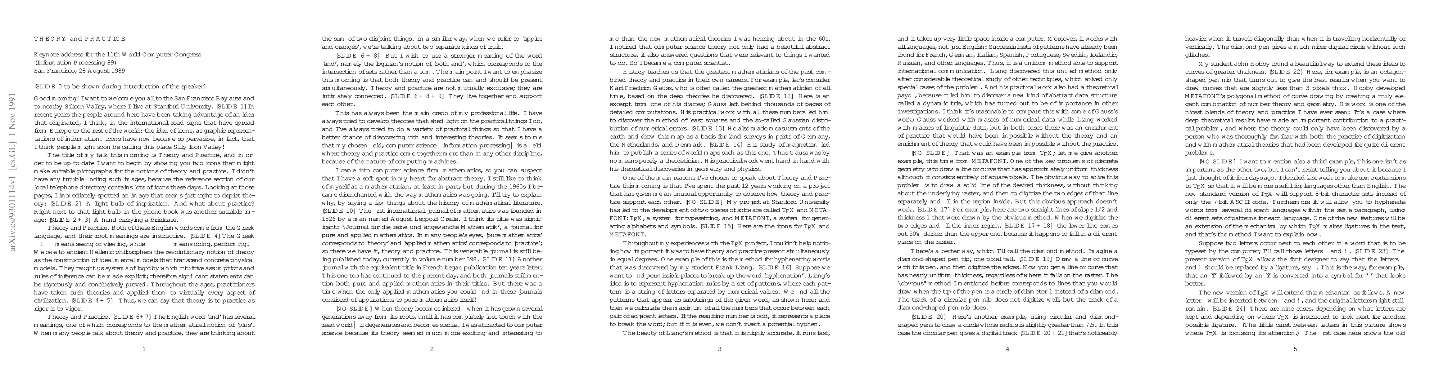 The author argues to Silicon Valley that the most important and powerful part of computer science is work that is simultaneously theoretical and practical. He particularly considers the intersection of the theory of algorithms and practical software development. He combines examples from the development of the TeX typesetting system with clever jokes, criticisms, and encouragements.