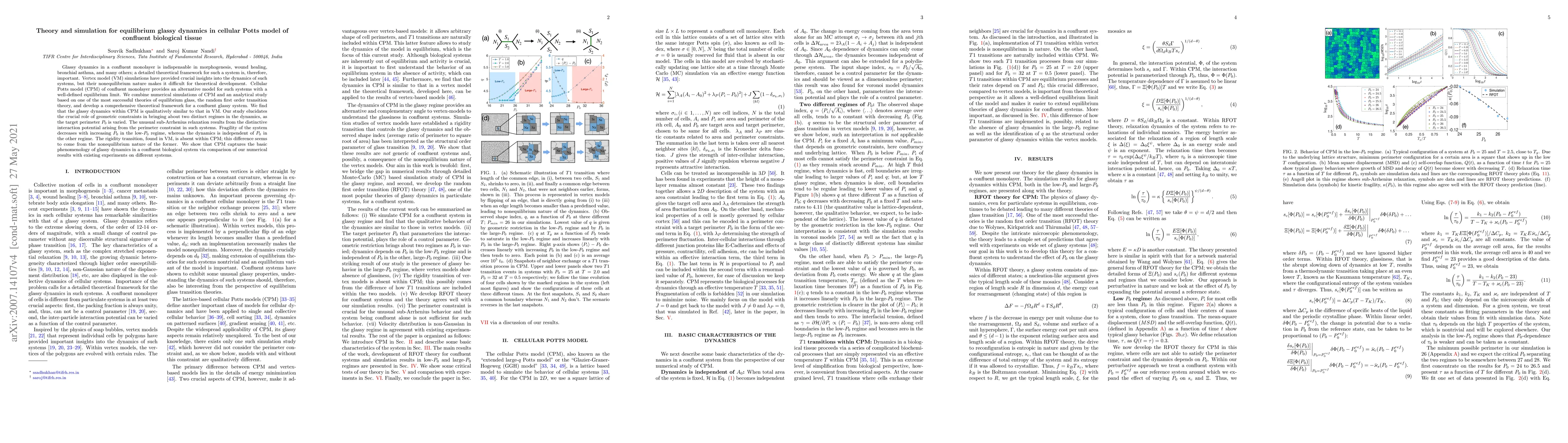 This research combines numerical simulations of the Cellular Potts Model (CPM) with analytical theory to develop a comprehensive framework for glassy dynamics in confluent biological tissue. The study reveals that CPM's dynamics, influenced by geometric constraints, exhibits two distinct regimes and sub-Arrhenius relaxation, and mirrors the dynamics seen in vertex model simulations, though lacking the rigidity transition.