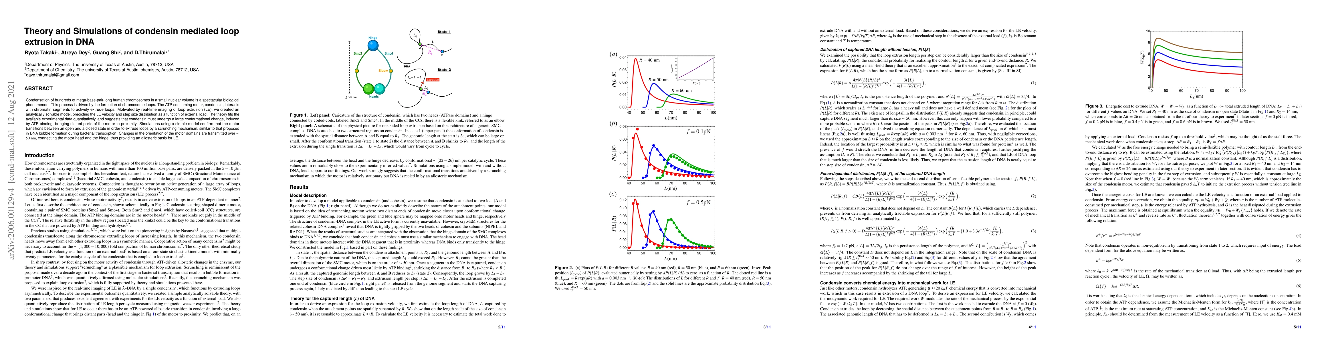 Condensation of hundreds of mega-base-pair-long human chromosomes in a small nuclear volume is a spectacular phenomenon. This process is driven by the formation of chromosome loops. ATP consuming motor, condensin, interacts with chromatin segments to actively extrude loops. Motivated by real-time imaging of loop extrusion (LE) and measurements using magnetic tweezer experiments, we created an analytically solvable model, predicting the LE velocity and step size distribution as a function of external load. The theory fits the experimental data quantitatively, and suggests that condensin must undergo a large conformational change, induced by ATP binding, bringing distant parts of the motor to proximity. Simulations using a simple model confirm that the motor transitions between an open to closed state in order to extrude loops by a scrunching mechanism, similar to that proposed in DNA bubble formation during bacterial transcription. Changes in the orientation of the motor domains are transmitted over $\sim$ 50 nm, connecting the motor head and the hinge, thus providing an allosteric basis for LE.