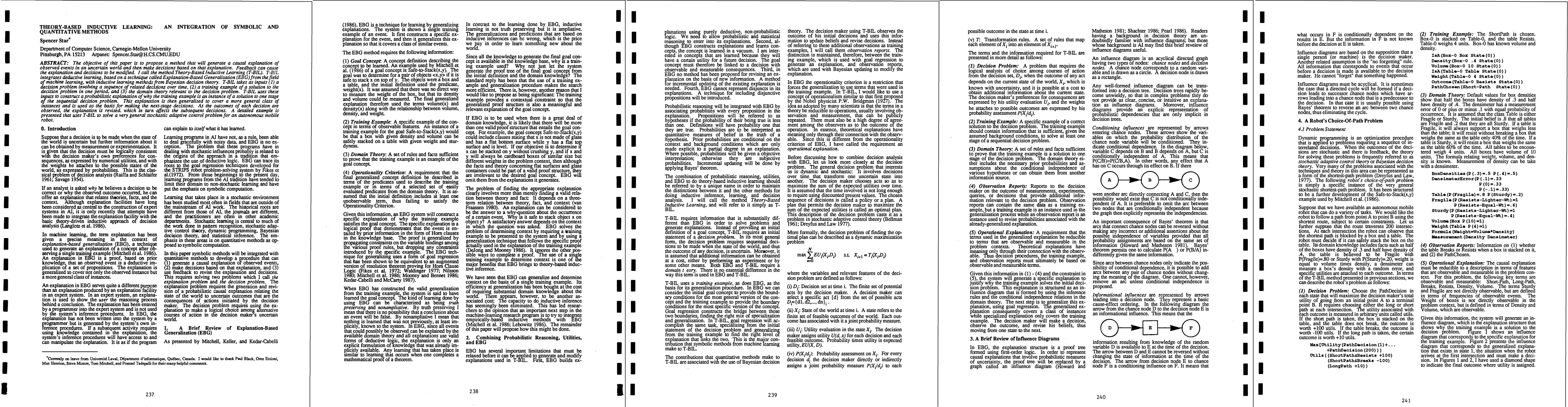 The objective of this paper is to propose a method that will generate a causal explanation of observed events in an uncertain world and then make decisions based on that explanation. Feedback can cause the explanation and decisions to be modified. I call the method Theory-Based Inductive Learning (T-BIL). T-BIL integrates deductive learning, based on a technique called Explanation-Based Generalization (EBG) from the field of machine learning, with inductive learning methods from Bayesian decision theory. T-BIL takes as inputs (1) a decision problem involving a sequence of related decisions over time, (2) a training example of a solution to the decision problem in one period, and (3) the domain theory relevant to the decision problem. T-BIL uses these inputs to construct a probabilistic explanation of why the training example is an instance of a solution to one stage of the sequential decision problem. This explanation is then generalized to cover a more general class of instances and is used as the basis for making the next-stage decisions. As the outcomes of each decision are observed, the explanation is revised, which in turn affects the subsequent decisions. A detailed example is presented that uses T-BIL to solve a very general stochastic adaptive control problem for an autonomous mobile robot.