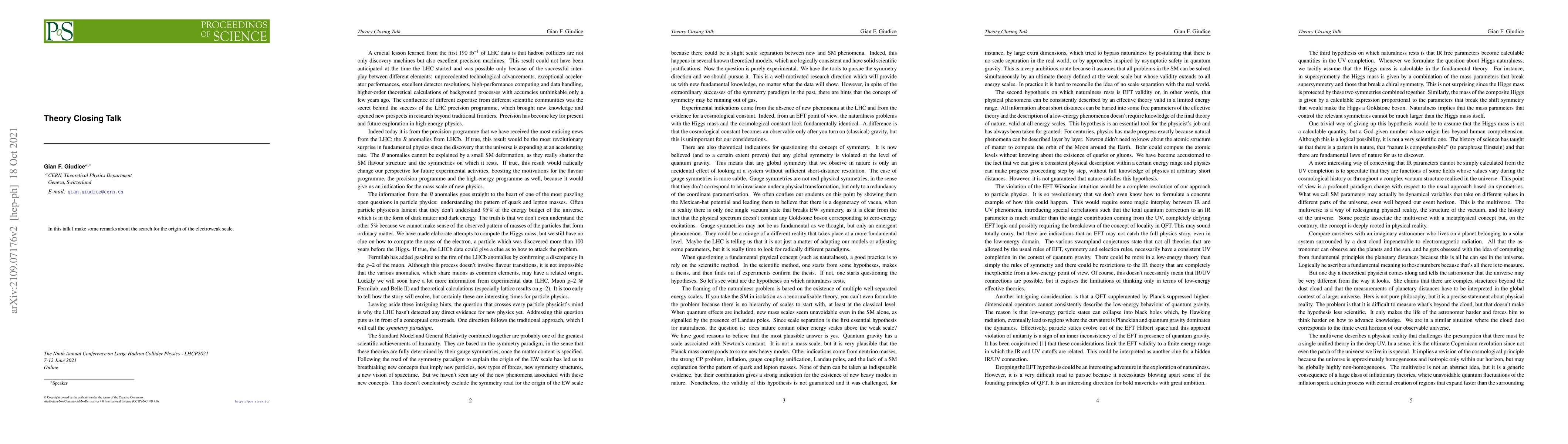 Summary: This paper discusses theoretical perspectives on the quest to determine the origin of the electroweak scale, emphasizing the ongoing challenges and potential approaches in the field.