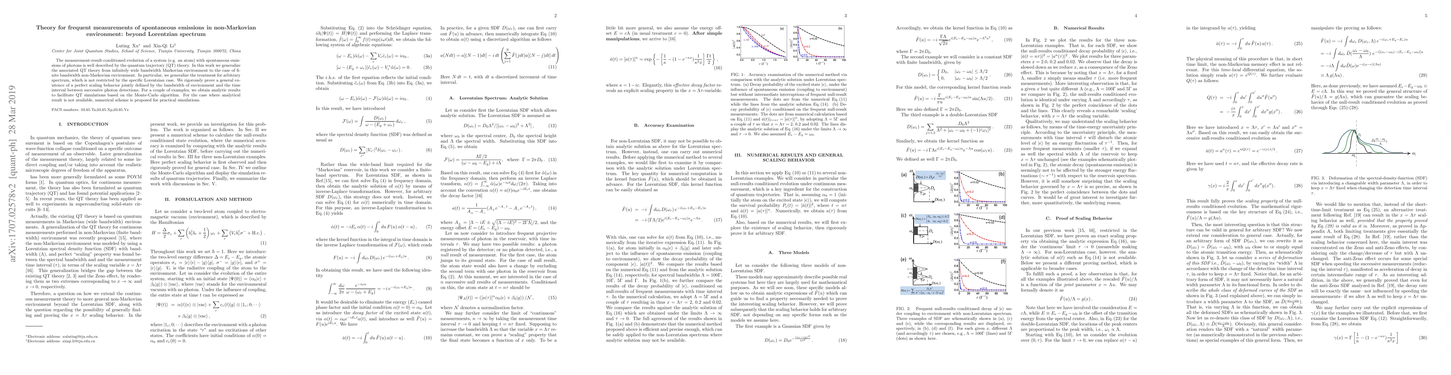 Researchers develop a new theory to measure spontaneous emissions in non-Markovian environments, which can help improve quantum trajectory simulations. The study finds that certain conditions allow for perfect scaling behavior with environment bandwidth and photon detection intervals.