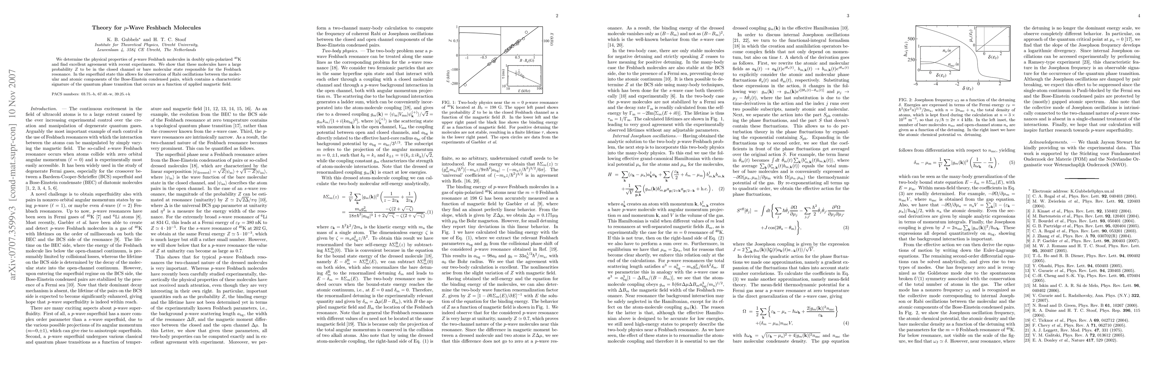 We determine the physical properties of \emph{p}-wave Feshbach molecules in doubly spin-polarized $^{40}$K and find excellent agreement with recent experiments. We show that these molecules have a large probability $Z$ to be in the closed channel or bare molecular state responsible for the Feshbach resonance. In the superfluid state this allows for observation of Rabi oscillations between the molecular and atomic components of the Bose-Einstein condensed pairs, which contains a characteristic signature of the quantum phase transition that occurs as a function of applied magnetic field.