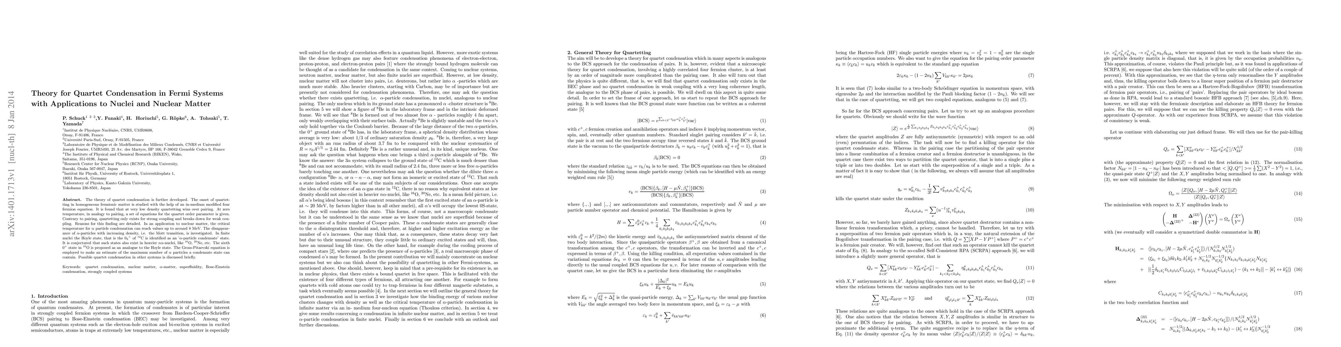 This paper develops the theory of quartet condensation in fermionic systems, showing that quartetting dominates over pairing at low densities. It identifies the Hoyle state in 12C and proposes analogous states in heavier nuclei, using the Gross-Pitaevski equation to estimate alpha particle condensates' capacity.