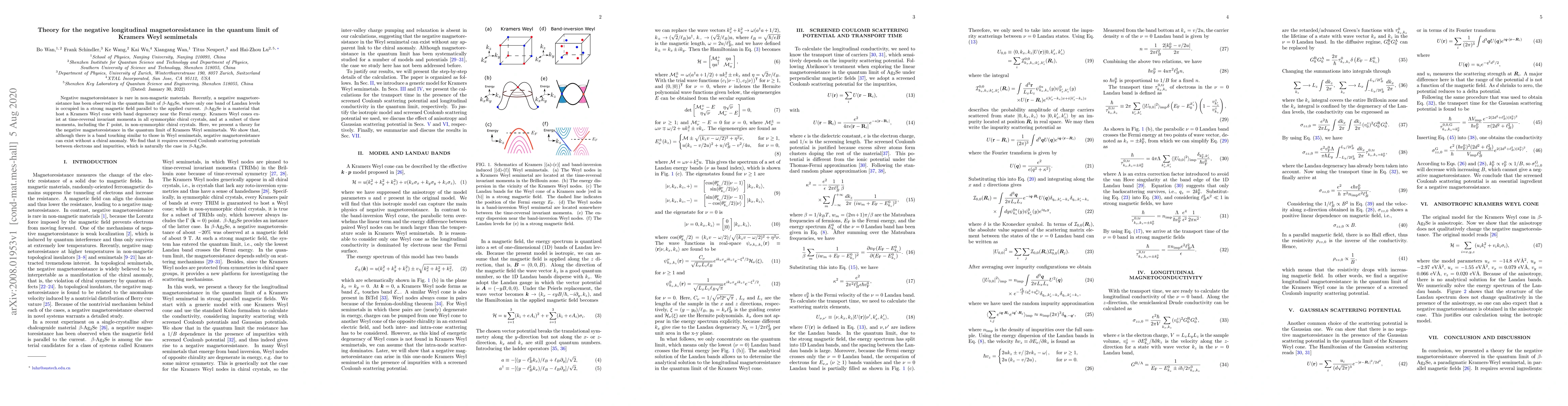 This paper develops a theoretical framework explaining the rare phenomenon of negative magnetoresistance in the quantum limit of Kramers Weyl semimetals, specifically focusing on $\beta$-Ag$_2$Se. It demonstrates that this effect can occur without the chiral anomaly typically associated with Weyl semimetals, attributing it instead to screened Coulomb scattering between electrons and impurities.