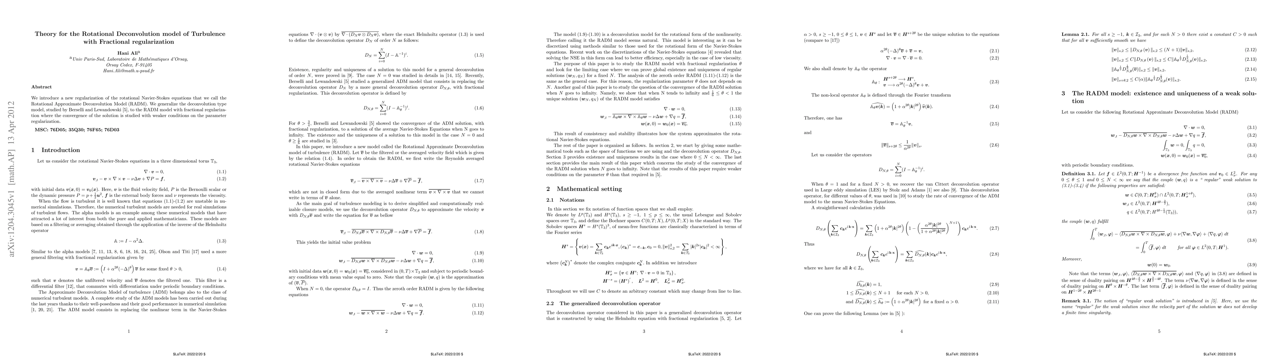 We introduce a new regularization of the rotational Navier-Stokes equations that we call the Rotational Approximate Deconvolution Model (RADM). We generalize the deconvolution type model, studied by Berselli and Lewandowski [5], to the RADM model with fractional regularization where the convergence of the solution is studied with weaker conditions on the parameter regularization.
