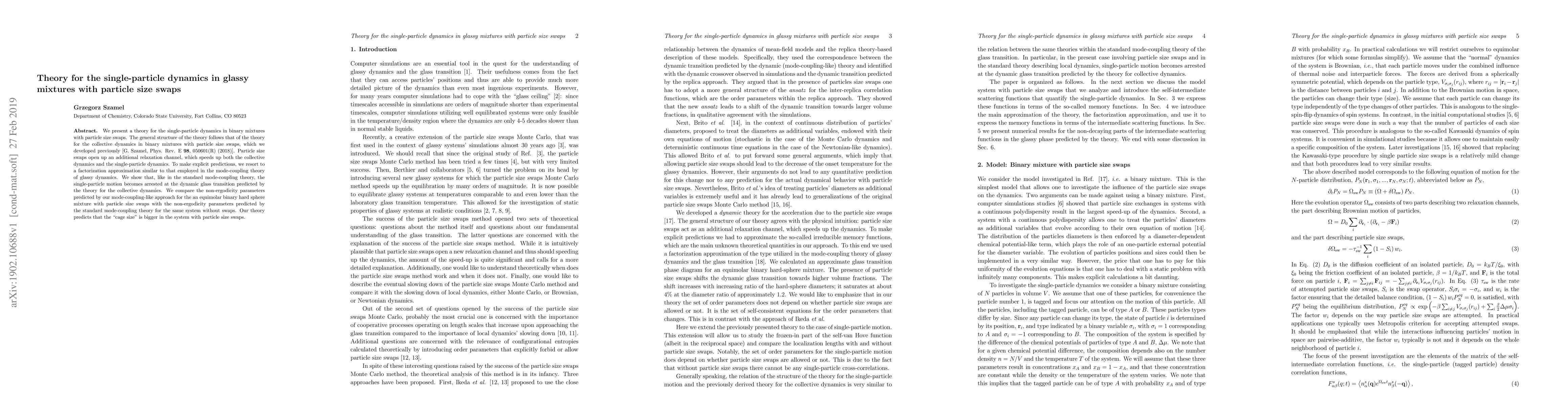 This paper develops a theoretical framework for single-particle dynamics in binary mixtures where particles can swap sizes, showing that size swaps accelerate both collective and single-particle dynamics. The theory employs a factorization approximation to predict the dynamic glass transition and compares the non-ergodicity parameters with standard mode-coupling theory, finding larger "cage sizes" in mixtures with size swaps.