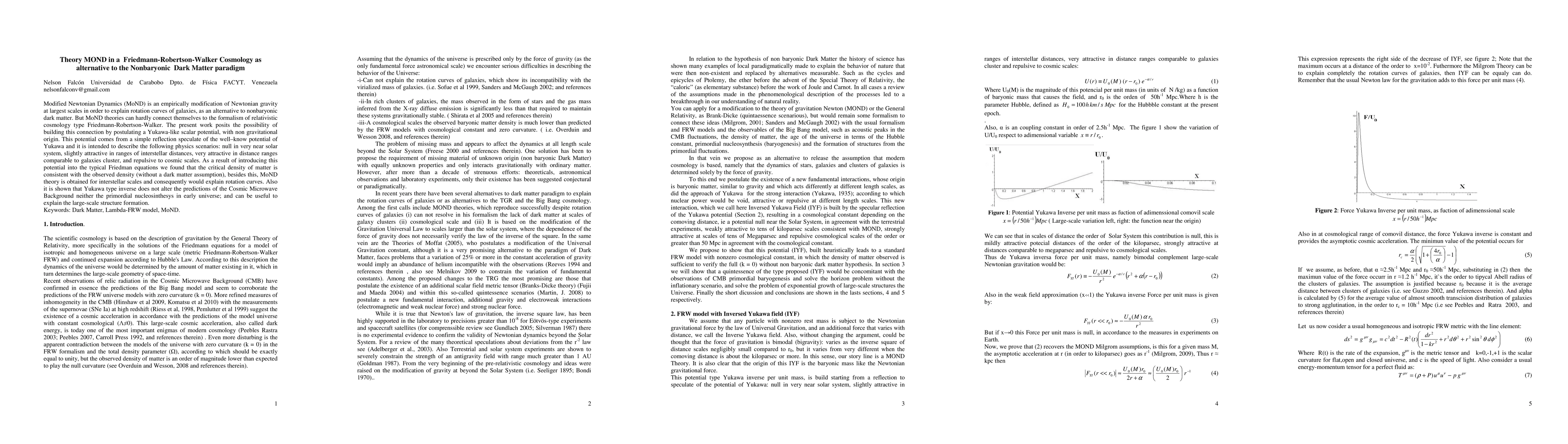 This paper explores integrating Modified Newtonian Dynamics (MOND) into a Friedmann-Robertson-Walker cosmology as an alternative to nonbaryonic dark matter. It proposes a Yukawa-like scalar potential to bridge MOND with relativistic cosmology, showing that it can explain galactic rotation curves and large-scale structure formation without invoking dark matter.