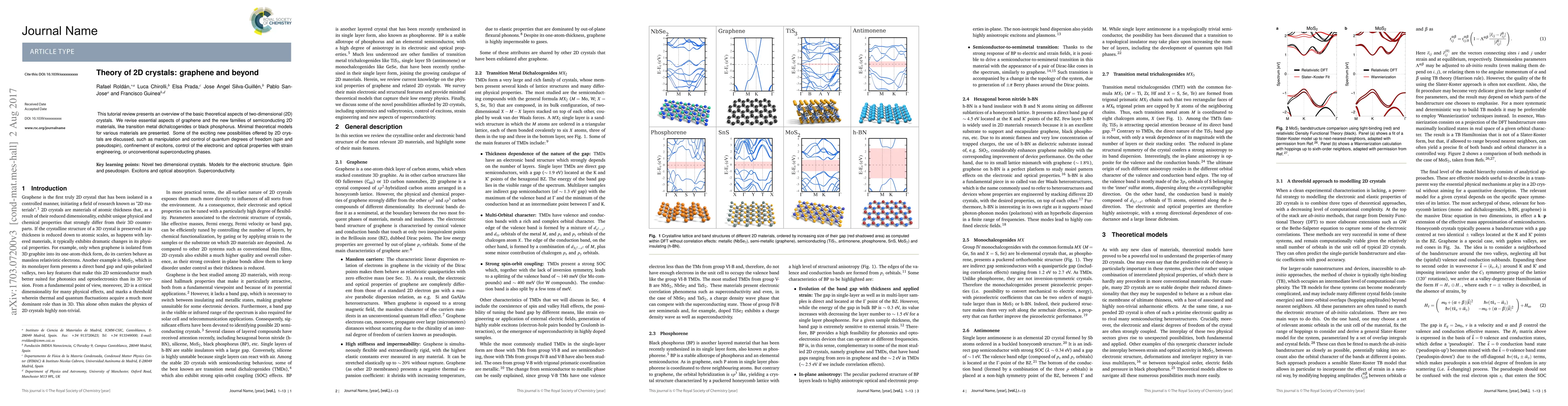 This tutorial review discusses the basic theoretical aspects of 2D crystals like graphene and new semiconducting materials, exploring their properties and potential applications in quantum control and superconductivity.