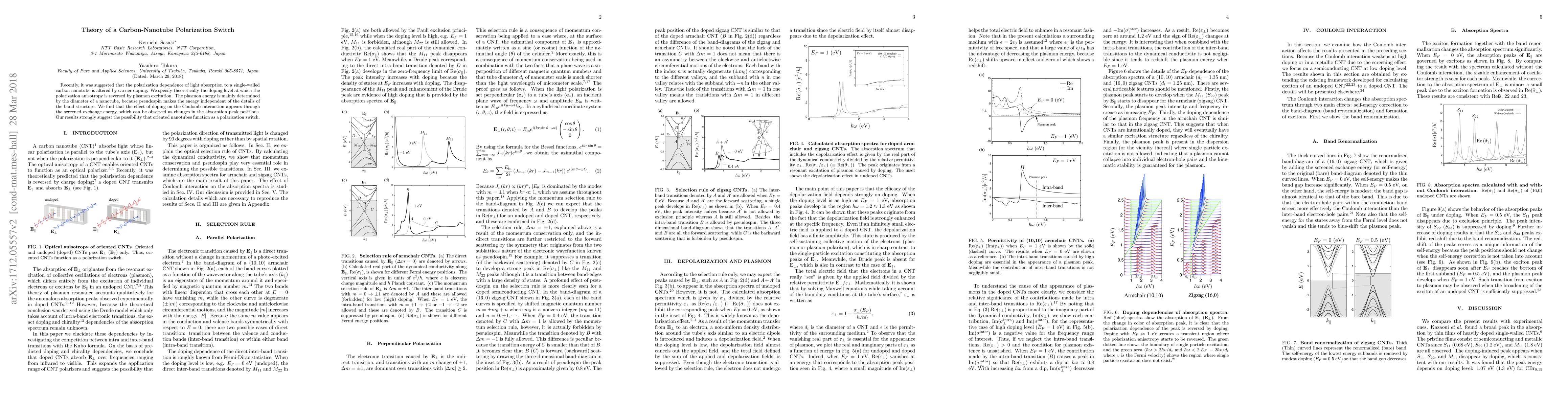 The paper presents a theoretical framework for understanding how carrier doping alters the polarization dependence of light absorption in CNTs, identifying plasmon energy as a key parameter dependent on nanotube diameter.