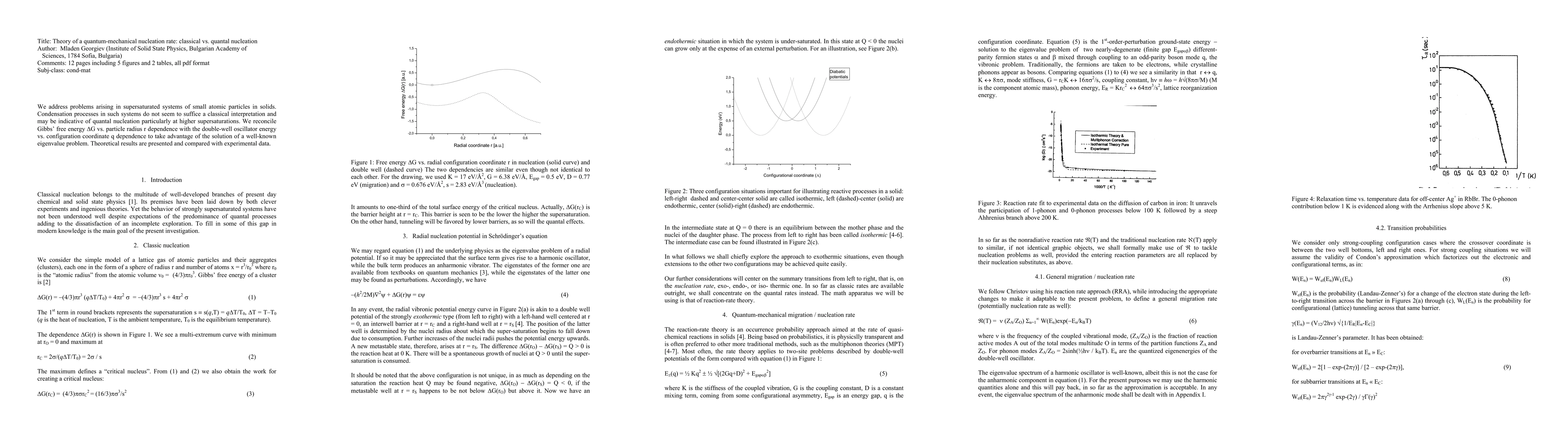 We address problems arising in supersaturated systems of small atomic particles in solids. Nucleation processes in such systems do not seem to follow the classical interpretation but may be indicative of quantal nucleation partucularly at higher supersaturations. We reconcile Gibbs' free energy DeltaG vs. particle radius r dependence with the double-well oscillator energy vs. configurational coordinate q dependence to take advantage of the solution of a well-known eigenvalue problem. Theoretical results are presented and compared with experimental data.