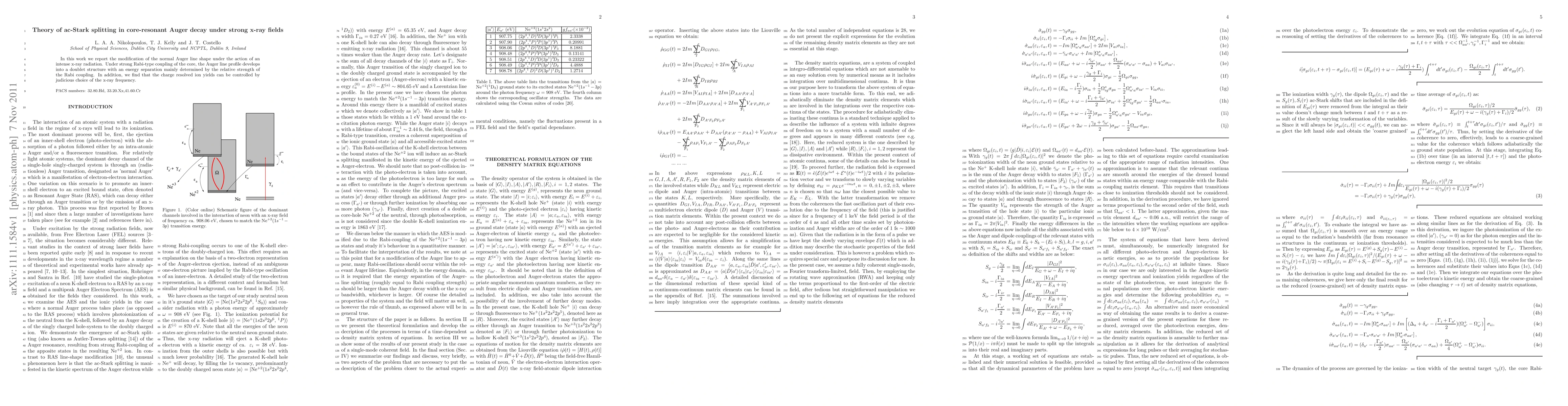 In this work we report the modification of the normal Auger line shape under the action of an intense x-ray radiation. Under strong Rabi-type coupling of the core, the Auger line profile develops into a doublet structure with an energy separation mainly determined by the relative strength of the Rabi coupling. In addition, we find that the charge resolved ion yields can be controlled by judicious choice of the x-ray frequency.