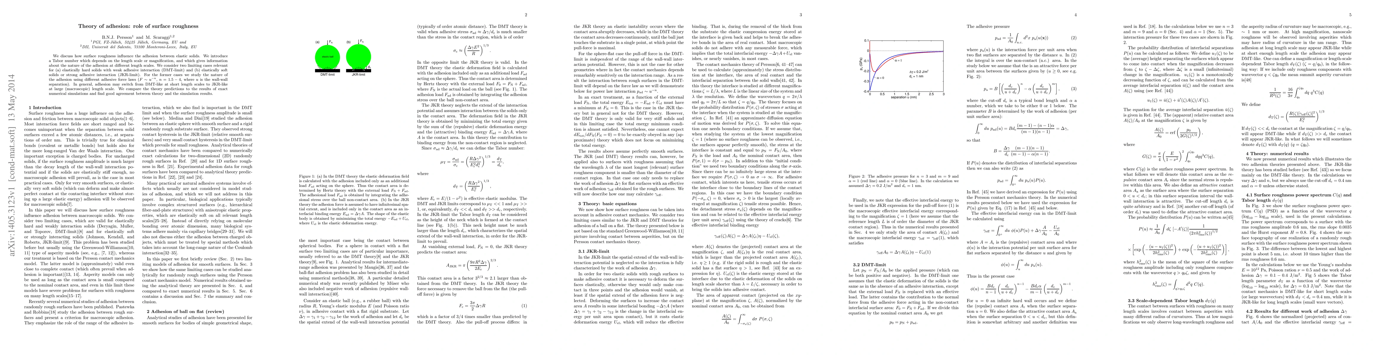 We discuss how surface roughness influence the adhesion between elastic solids. We introduce a Tabor number which depends on the length scale or magnification, and which gives information about the nature of the adhesion at different length scales. We consider two limiting cases relevant for (a) elastically hard solids with weak adhesive interaction (DMT-limit) and (b) elastically soft solids or strong adhesive interaction (JKR-limit). For the former cases we study the nature of the adhesion using different adhesive force laws ($F\sim u^{-n}$, $n=1.5-4$, where $u$ is the wall-wall separation). In general, adhesion may switch from DMT-like at short length scales to JKR-like at large (macroscopic) length scale. We compare the theory predictions to the results of exact numerical simulations and find good agreement between theory and the simulation results.