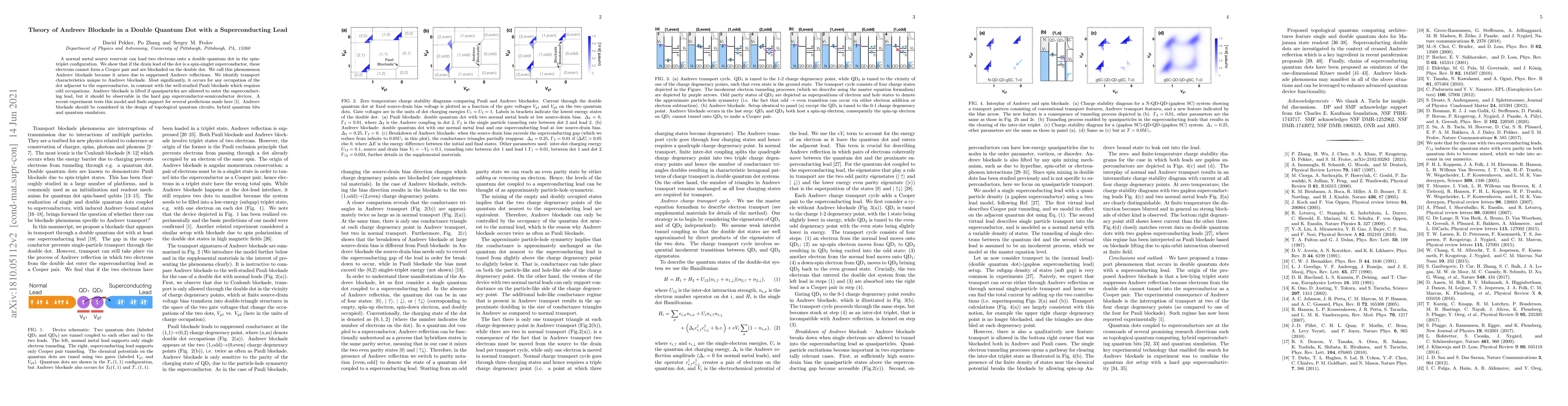 This paper explores the phenomenon of Andreev blockade in a double quantum dot connected to a normal metal and a spin-singlet superconducting lead, revealing that electrons in a spin-triplet configuration cannot form Cooper pairs due to suppressed Andreev reflections. This effect is distinct from the Pauli blockade and is significant for the design of topological quantum circuits and quantum bits.