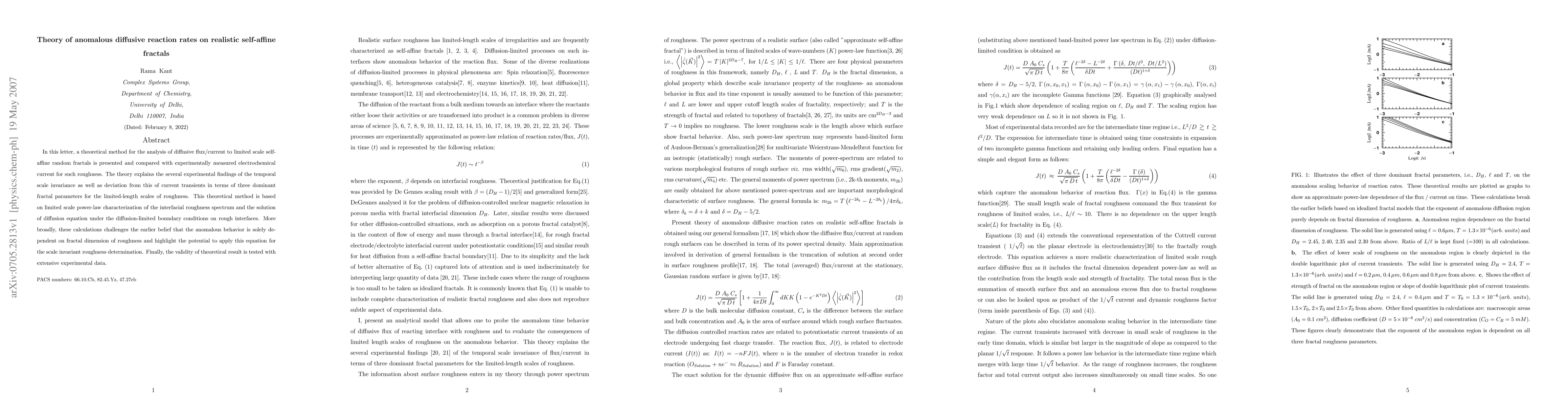 In this letter, a theoretical method for the analysis of diffusive flux/current to limited scale self-affine random fractals is presented and compared with experimentally measured electrochemical current for such roughness. The theory explains the several experimental findings of the temporal scale invariance as well as deviation from this of current transients in terms of three dominant fractal parameters for the limited-length scales of roughness. This theoretical method is based on limited scale power-law characterization of the interfacial roughness spectrum and the solution of diffusion equation under the diffusion-limited boundary conditions on rough interfaces. More broadly, these calculations challenges the earlier belief that the anomalous behavior is solely dependent on fractal dimension of roughness and highlight the potential to apply this equation for the scale invariant roughness determination. Finally, the validity of theoretical result is tested with extensive experimental data.
