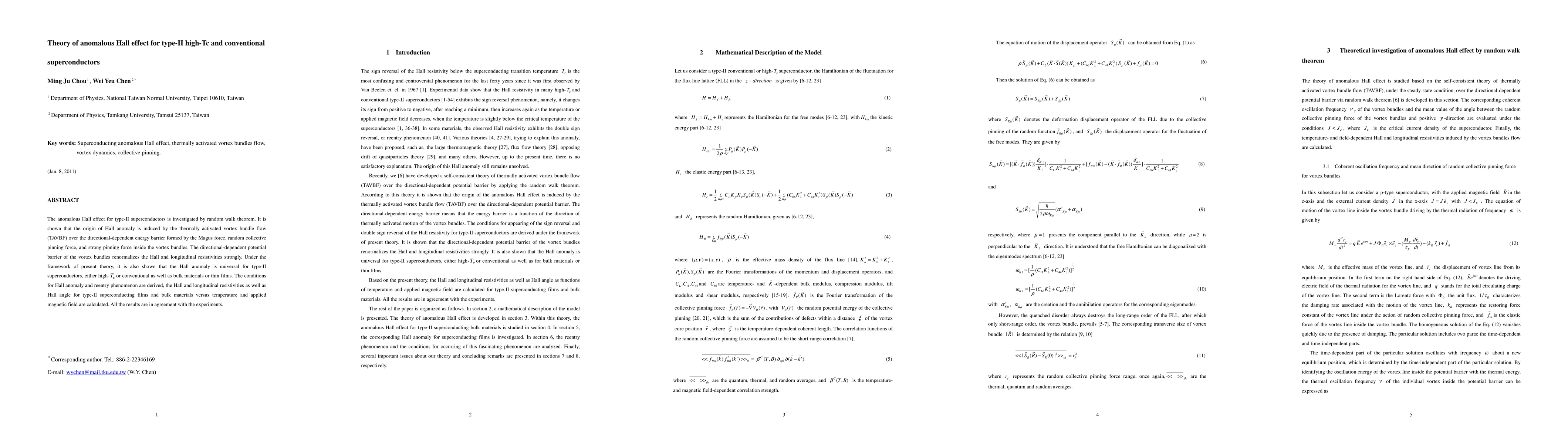 This paper investigates the anomalous Hall effect in type-II superconductors, attributing it to thermally activated vortex bundle flow overcoming directional-dependent energy barriers. The theory demonstrates that this phenomenon is universal across various type-II superconductors and accurately predicts the Hall effect's behavior under different conditions.