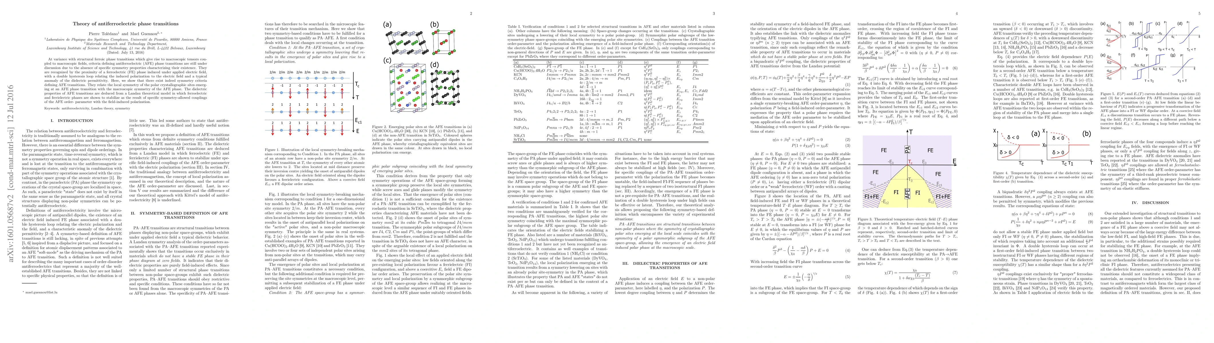 This paper establishes symmetry criteria for antiferroelectric (AFE) phase transitions, demonstrating that local symmetry of polar crystallographic sites correlates with macroscopic AFE phase symmetry. It uses a Landau theoretical model to show how ferroelectric and ferrielectric phases emerge from specific symmetry-allowed couplings of the AFE order parameter with electric field-induced polarization.