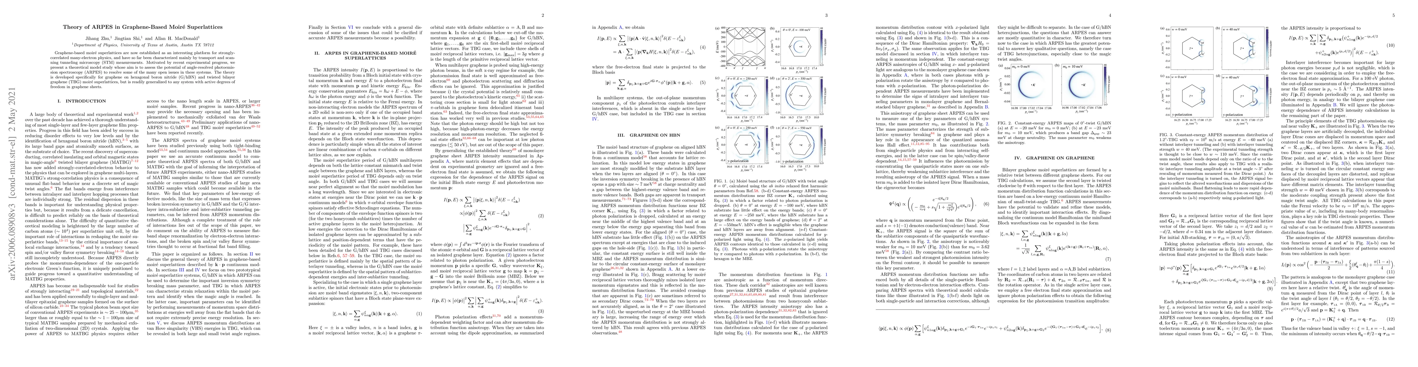 This paper develops a theoretical model to evaluate the potential of angle-resolved photoemission spectroscopy (ARPES) in resolving open questions in graphene-based moiré superlattices, specifically focusing on graphene on hexagonal boron nitride and twisted bilayer graphene systems. The model aims to address strongly-correlated many-electron physics issues in these platforms.