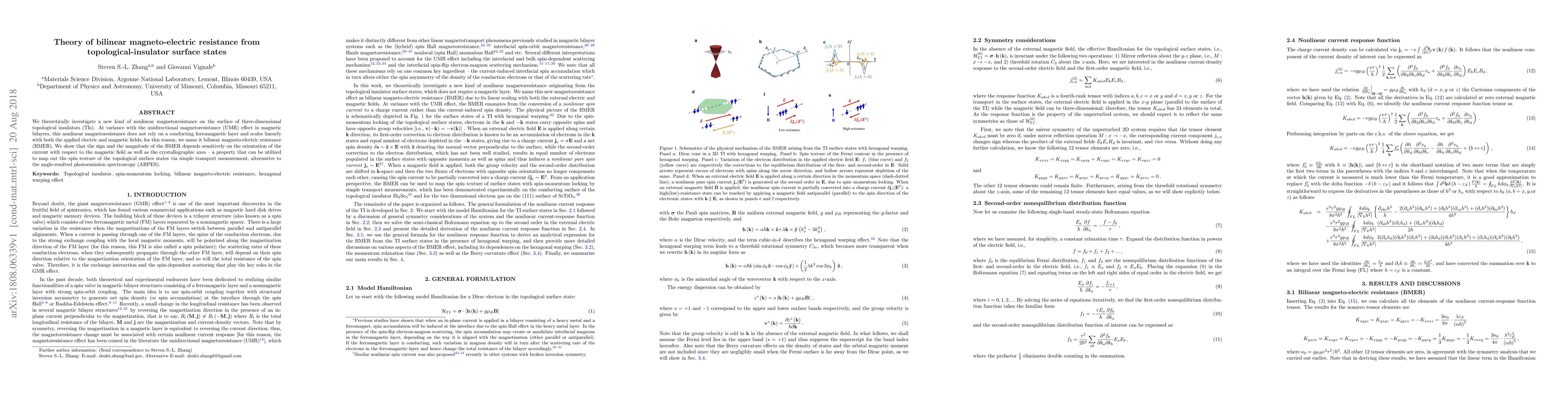 This paper investigates a novel nonlinear magnetoresistance termed bilinear magneto-electric resistance (BMER) on the surface of three-dimensional topological insulators, which scales linearly with both electric and magnetic fields. The BMER's magnitude and sign depend on current orientation and crystallographic axes, offering a method to map spin textures via transport measurements.