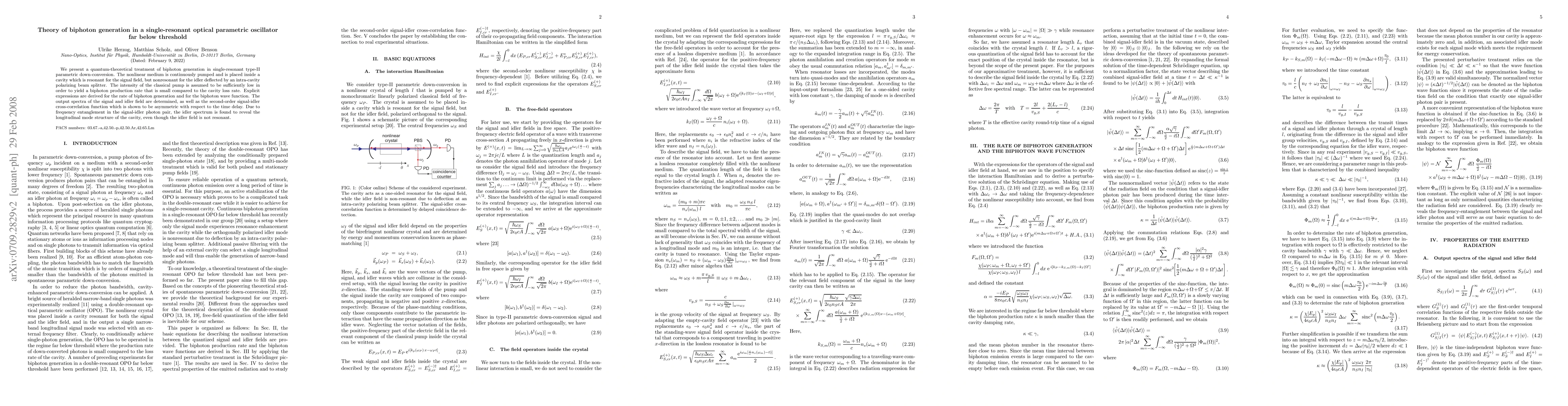 This paper provides a quantum-theoretical analysis of biphoton generation in a single-resonant optical parametric oscillator, deriving expressions for the biphoton generation rate and wave function, and demonstrating frequency entanglement leading to a longitudinal mode structure in the idler spectrum despite the idler field being nonresonant.