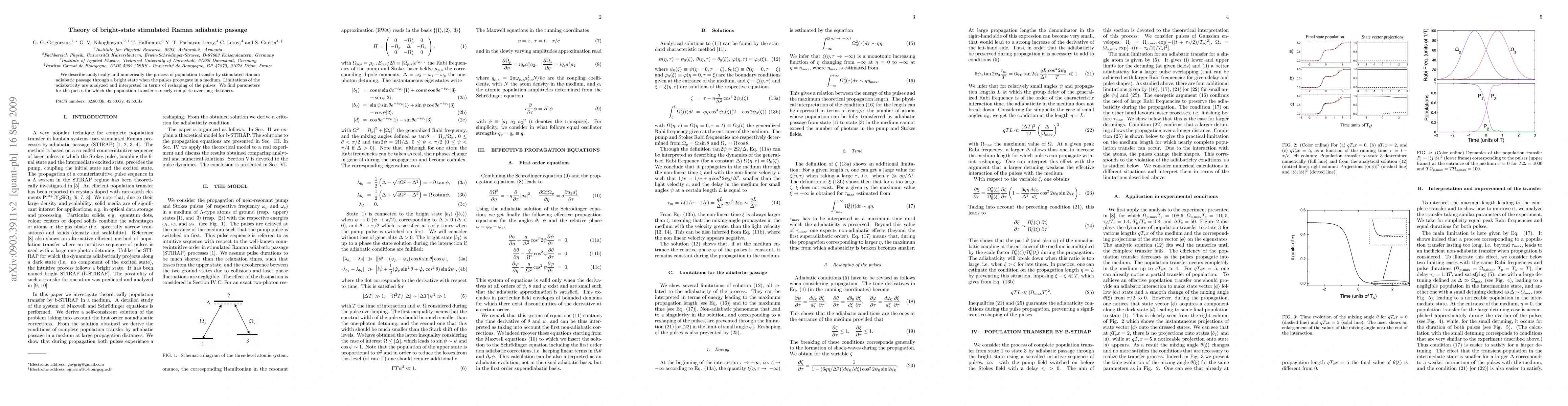 This paper investigates the stimulated Raman adiabatic passage (STIRAP) through a bright state, analyzing both analytically and numerically how population transfer occurs in a medium. It identifies conditions under which nearly complete transfer is achieved over long distances despite adiabatic limitations.