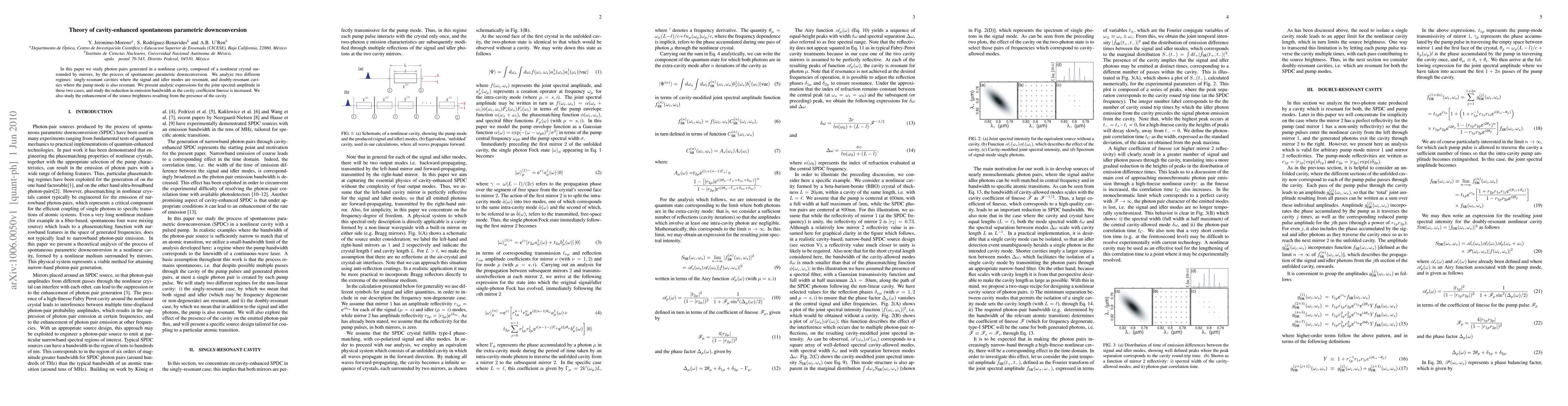 This paper investigates photon pairs produced in nonlinear cavities via spontaneous parametric downconversion, analyzing both singly-resonant and doubly-resonant regimes. It provides analytic expressions for joint spectral amplitude and examines the effects of cavity finesse on emission bandwidth and source brightness enhancement.