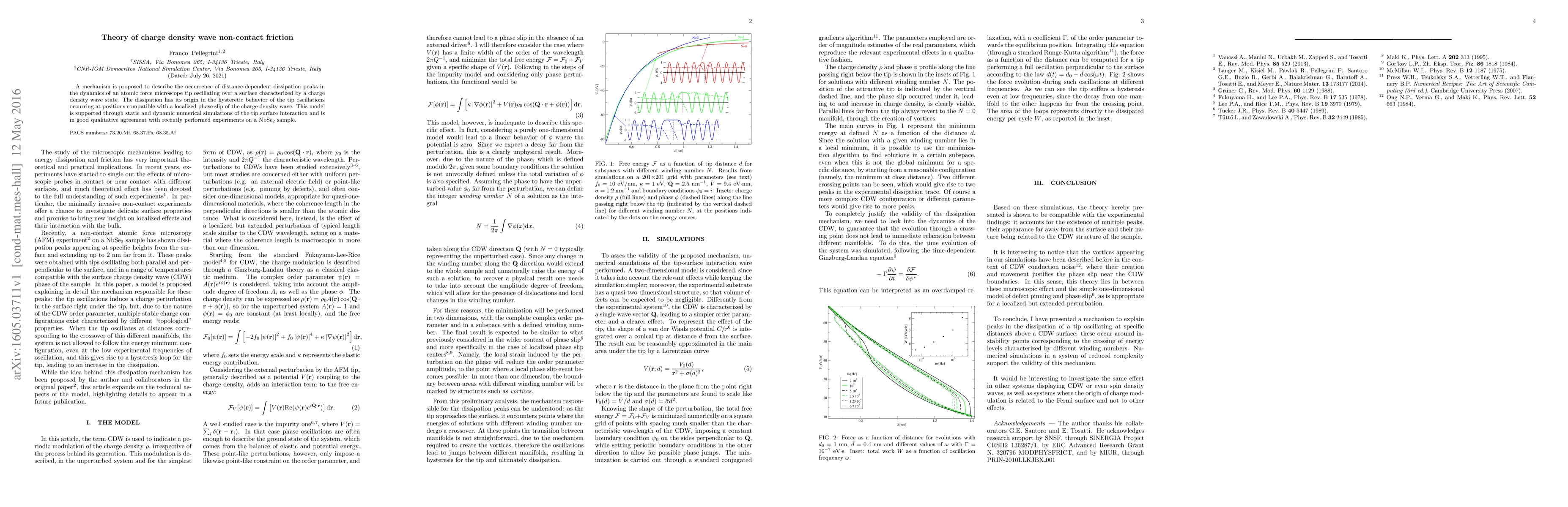 Researchers propose a theory explaining how atomic force microscope tips experience friction peaks when oscillating over surfaces with charge density wave states. Their model is supported by simulations and agrees with experimental results on a specific material.