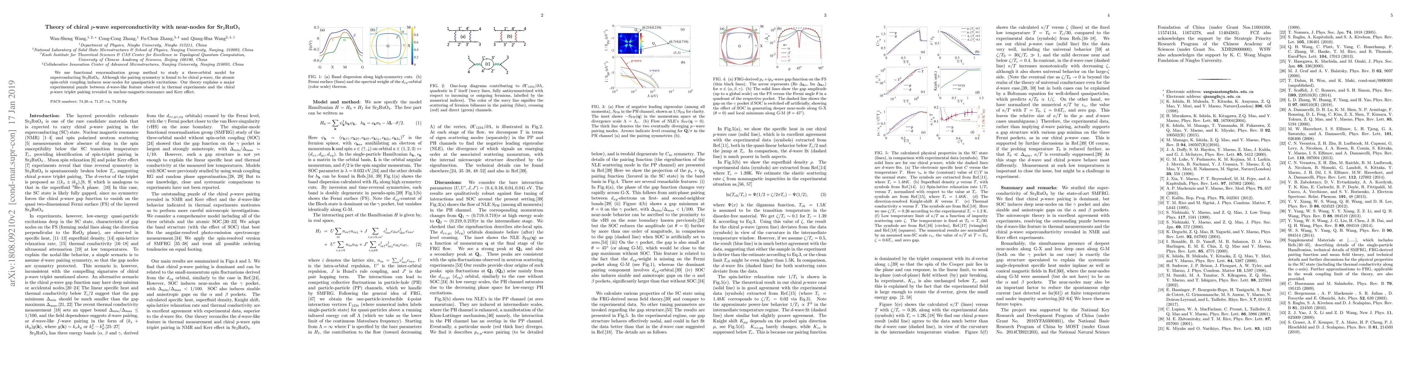 We use functional renormalization group method to study a three-orbital model for superconducting Sr$_2$RuO$_4$. Although the pairing symmetry is found to be chiral $p$-wave, the atomic spin-orbit coupling induces near-nodes for quasiparticle excitations. Our theory explains a major experimental puzzle between $d$-wave-like feature observed in thermal experiments and the chiral $p$-wave triplet pairing revealed in nuclear-magnetic-resonance and Kerr effect.