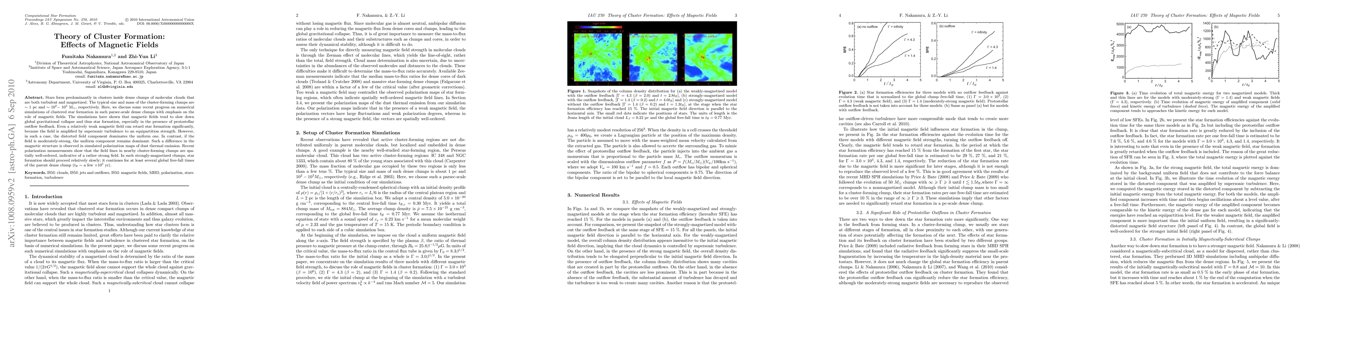Recent simulations suggest magnetic fields slow down star formation in cluster-forming clumps by retarding gravitational collapse, especially with outflow feedback. Field strength affects its structure, observed in polarization maps. Strong magnetic fields, indicated by well-ordered lines in nearby clumps, imply slower star formation taking several free-fall times of the parent clump (a few ×10^5 yr).