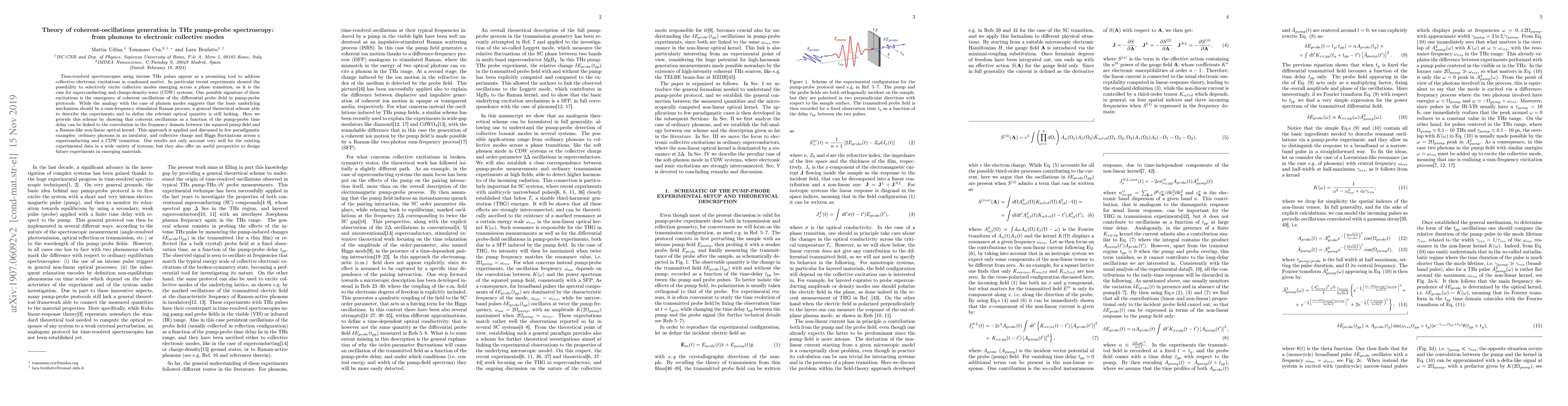 This paper develops a theoretical framework for detecting coherent oscillations in THz pump-probe spectroscopy, linking these oscillations to a Raman-like non-linear optical kernel. The proposed model successfully explains experimental observations across various systems, including phonons and collective electronic modes in superconducting and charge-density-wave systems.