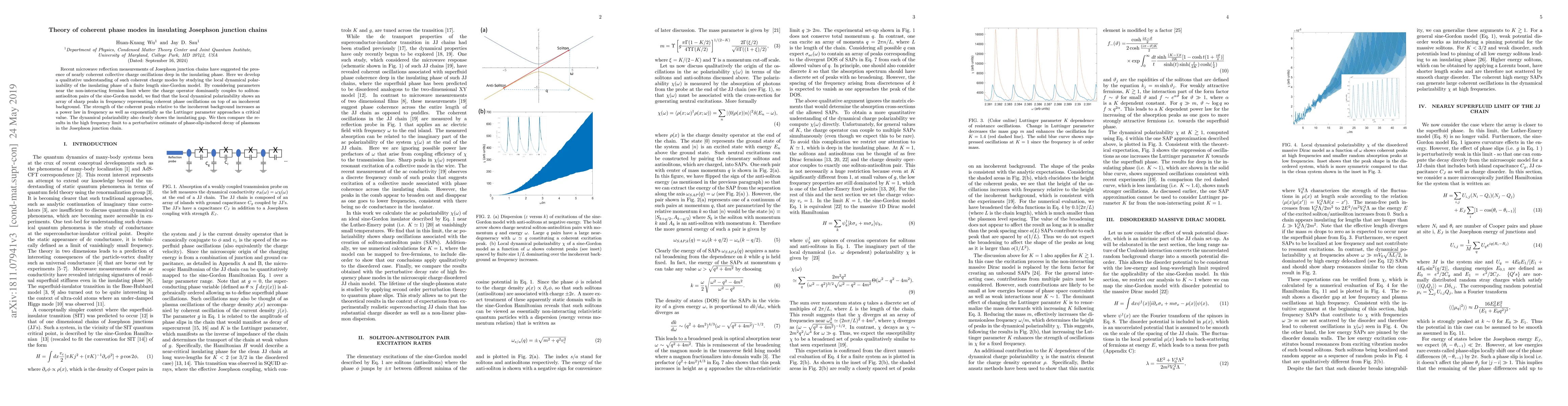 This paper explores the coherent charge oscillations in insulating Josephson junction arrays through the study of the local dynamical conductivity in the sine-Gordon model. It finds sharp peaks in frequency representing coherent phase oscillations, with their strength increasing as the Luttinger parameter approaches a critical value.