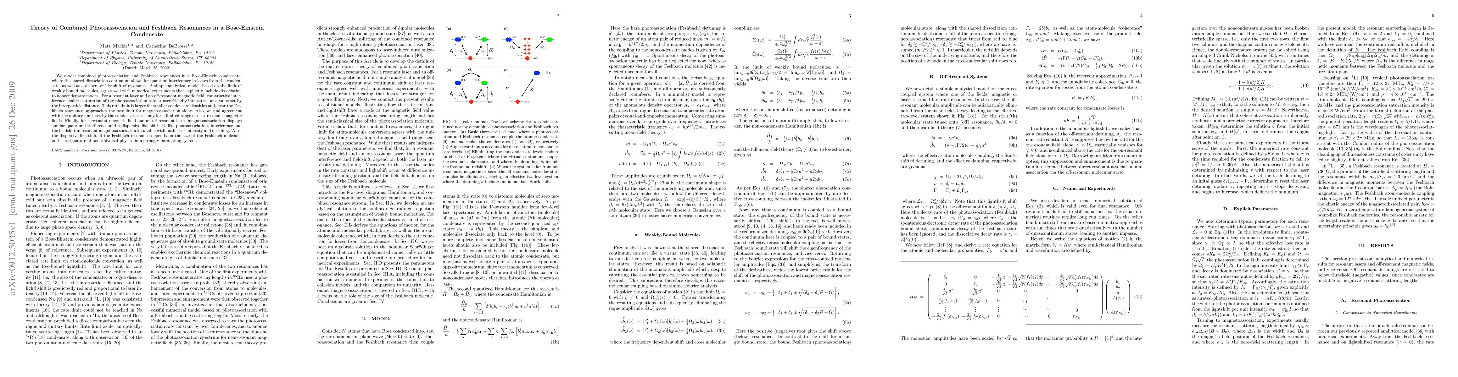 This paper models the combined effects of photoassociation and Feshbach resonances in a Bose-Einstein condensate, showing quantum interference in losses and a dispersive-like resonance shift. The analytical model aligns well with numerical simulations, revealing that constructive interference can saturate the photoassociation rate at manageable intensities.