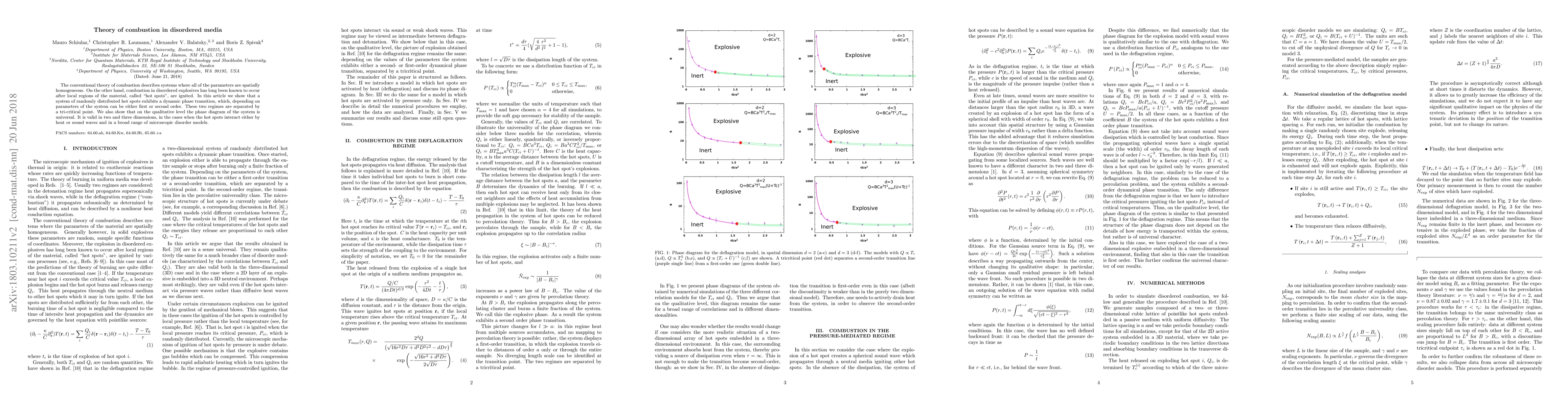 The conventional theory of combustion describes systems where all of the parameters are spatially homogeneous. On the other hand, combustion in disordered explosives has long been known to occur after local regions of the material, called "hot spots", are ignited. In this article we show that a system of randomly distributed hot spots exhibits a dynamic phase transition, which, depending on parameters of the system can be either first or second order. These two regimes are separated by a tri-critical point. We also show that on the qualitative level the phase diagram of the system is universal. It is valid in two and three dimensions, in the cases when the hot spots interact either by heat or sound waves and in a broad range of microscopic disorder models.